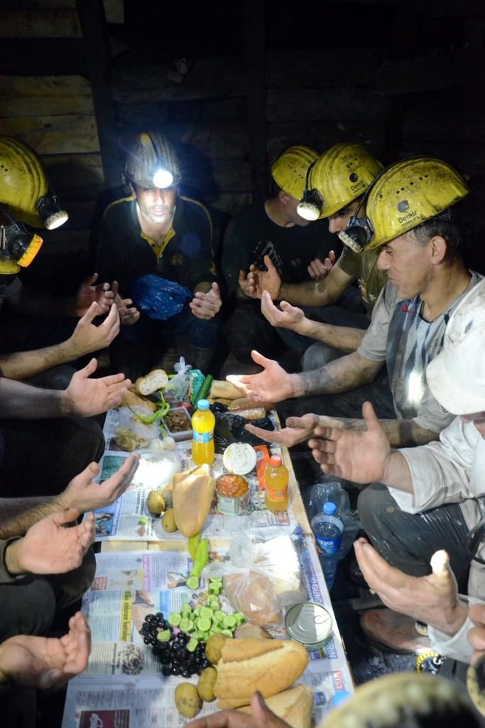 Yanlarında getirdikleri domates, biber, peynir, konserve ve ekmeği, ocak içinde kömürden kararmış elleriyle yiyen işçiler, ezan vaktinin gelmesiyle oruç için niyette bulunup, dua etti. İşçiler, daha sonra maden ocağındaki mesailerine devam etti.