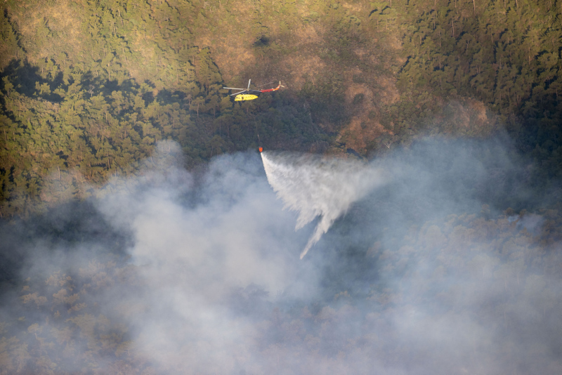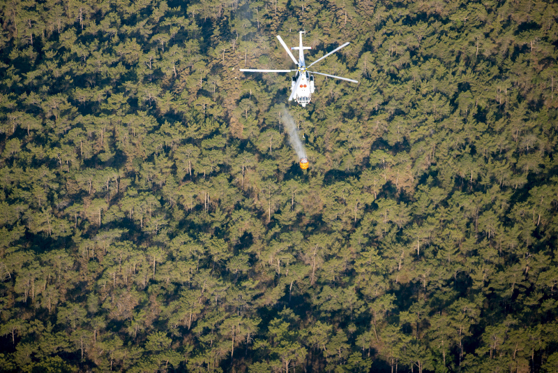 Uçak ve helikopterler sık sık yoğun dumanlık alanlara sorti yaparak yangının önünü kesmeye çalışıyor.
