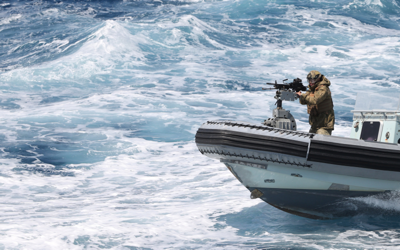 Mayın avlama gemisinin mayını tespitinin ardından emniyete alınan bölgeye helikopterle SAS timi sevk edildi. Helikopterden denize atılan SAS unsurları mayını imha etti.