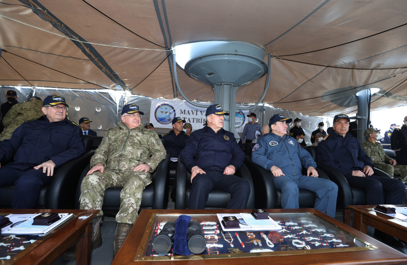 TCG Milli Savunma Bakanı Hulusi Akar'ın Türk Silahlı Kuvvetleri komuta kademesi ile katıldığı Mavi Vatan Tatbikatı'nın Seçkin Gözlemci Günü faaliyetlerinin birinci safhası tamamlandı. Bu sene Mavi Vatan tatbikadında bir ilk gerçekleşti. Tatbikatta, Deniz Kuvvetleri envanterine giren Aksungur SİHA'dan yerli imkanlarla geliştirilen MAM-L akıllı mühimmatla ilk defa su üstü hedefe atış yapıldı. Öte yandan Milli Savunma Bakanı Hulusi Akar da TCG Kemalreis Fırkateyni'nde tatbikatı takip etti.