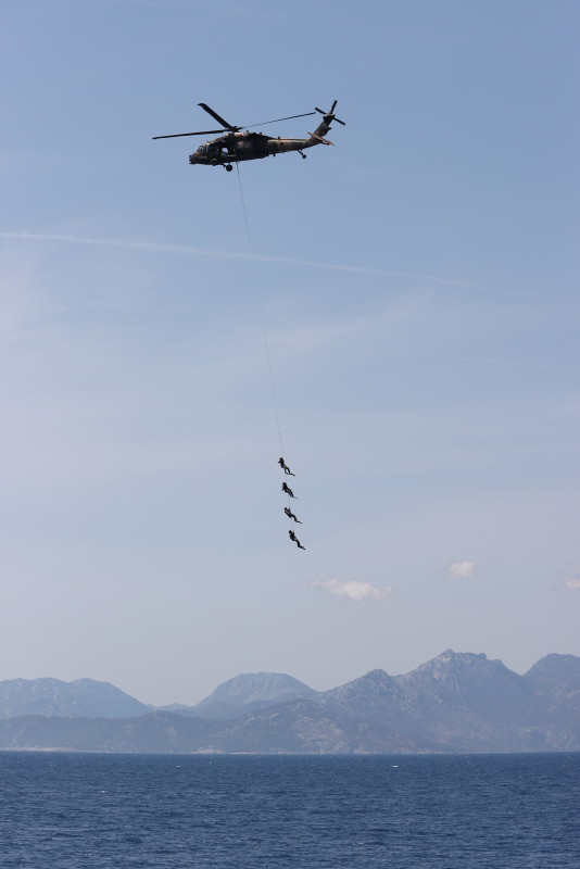 Harekat kapsamında SAT unsurları helikopterden suya atlayarak adadaki hedeflere yönelik sızma harekatı gerçekleştirdi.