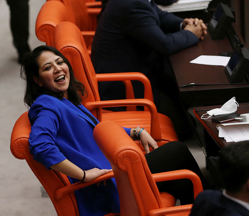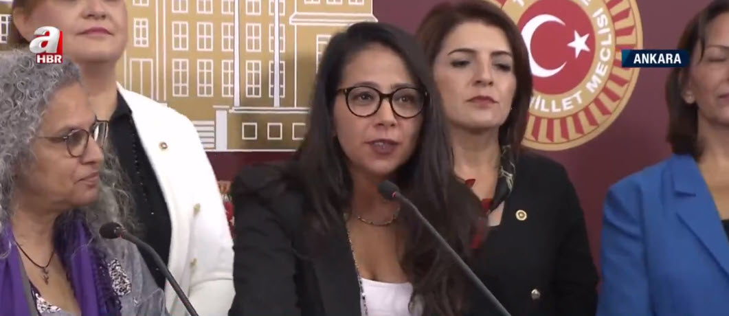 Tartışıalcak sözlerin söylendiği toplantıda, TİP'li Sera Kadıgil de terörden tutuklu HDP'liler Gültan Kışanak ve Figen Yüksekdağ'a sahip çıktı.