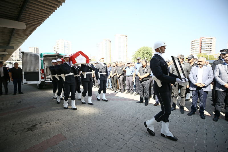 Polisevine yönelik terör saldırısında şehit düşen polis memuru Sedat Gezer için İl Emniyet Müdürlüğü önünde cenaze töreni düzenlendi.