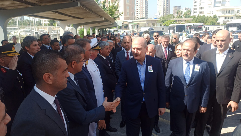 Soylu, Mezitli ilçesi Deniz Mahallesi'ndeki polisevinde yaptığı incelemenin ardından, beraberinde Vali Ali Hamza Pehlivan ile saldırıda yaralanan polis memurunun tedavi gördüğü Mersin Üniversitesi Tıp Fakültesi Hastanesi'ne gitti.