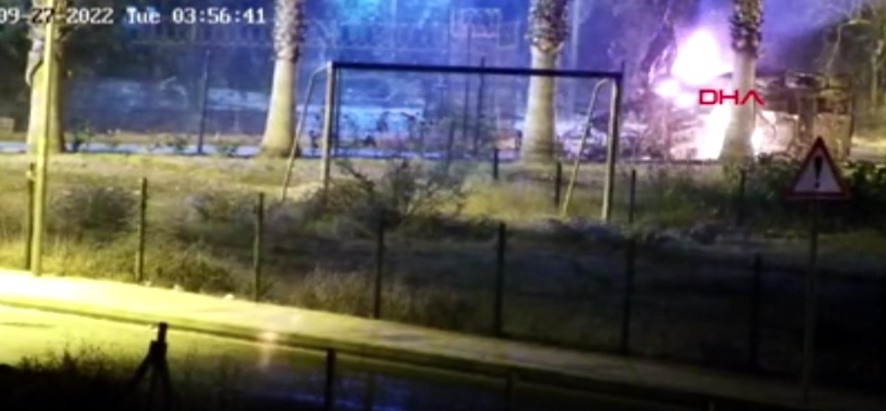 Mersin'in Mezitli ilçesinde yer alan Tece Polisevine düzenlenen hain terör saldırısına ilişkin yeni görüntüler ortaya çıktı. Uzun namlulu silahlarla istediğini alamayan ve kaçamayacağını anlayan PKK'lı teröristin sırt çantasında taşıdığı bombalarla kendisini patlattı görüldü.