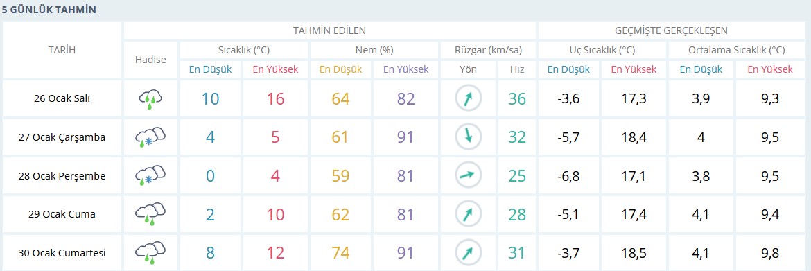26 OCAK HAVA DURUMU RAPORU