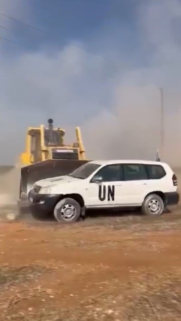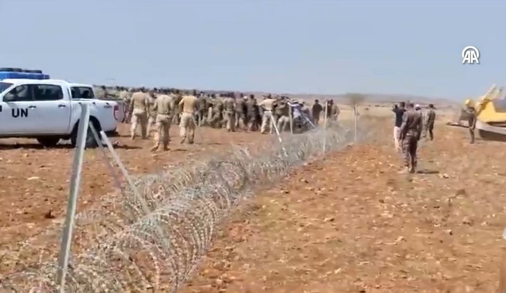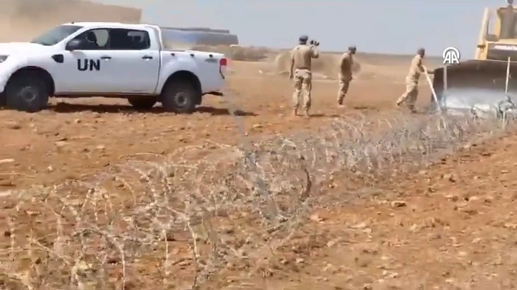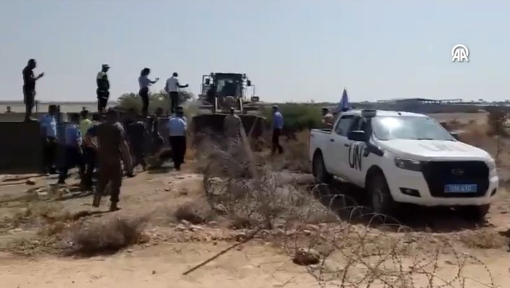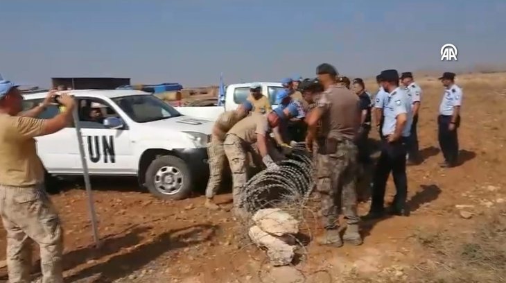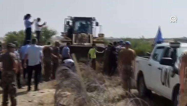 Türk tarafının yetkililerini ve yol yapım araçlarını engellemek isteyen BM Barış Gücü askerleri, ayrıca araçlarını KKTC topraklarına park etti.