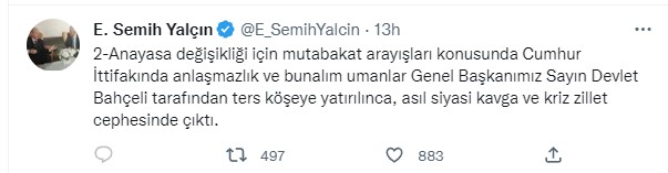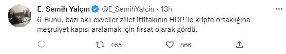 MHP Genel Başkan Yardımcısı ve İstanbul Milletvekili Semih Yalçın'dan CHP Genel Başkanı Kemal Kılıçdaroğlu'na sert eleştiriler peş peşe geldi.
