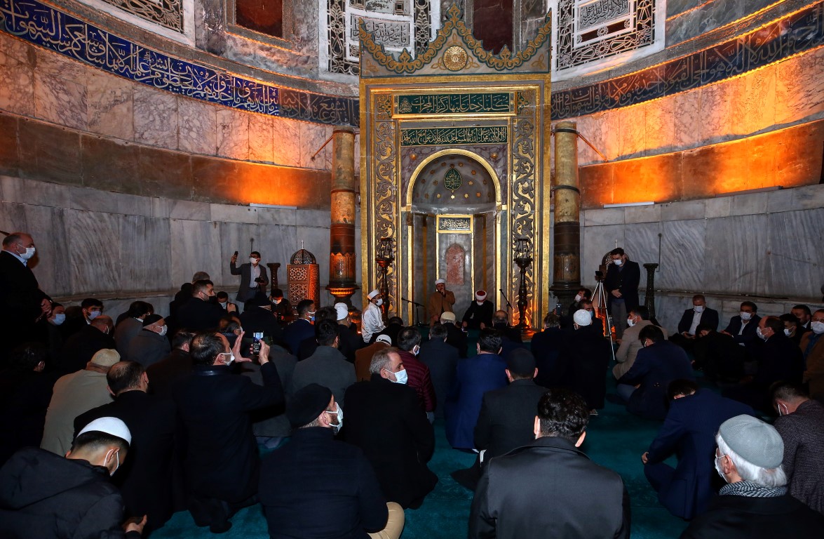 Merhum Erbakan'ın yıllarca mücadele ettiği, "Zincirler kırılsın Ayasofya açılsın" sloganı ve hedefiyle gençleri ve bütün milleti harekete geçirdiği Ayasofya-i Kebir Cami-i Şerifi'nde olduklarını hatırlatan Erbakan, "Ayasofya-i Kebir Camisi'nde, kendisinin vefatının 10. yıl dönümünde bu Mevlid-i Şerif'i gerçekleştiriyoruz. Cenab-ı Allah'a sonsuz şükürler olsun." dedi.
