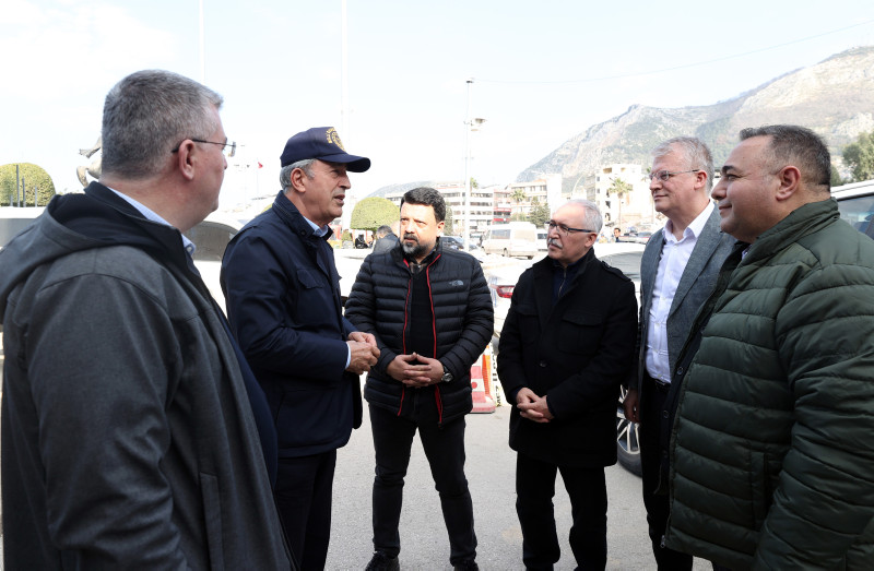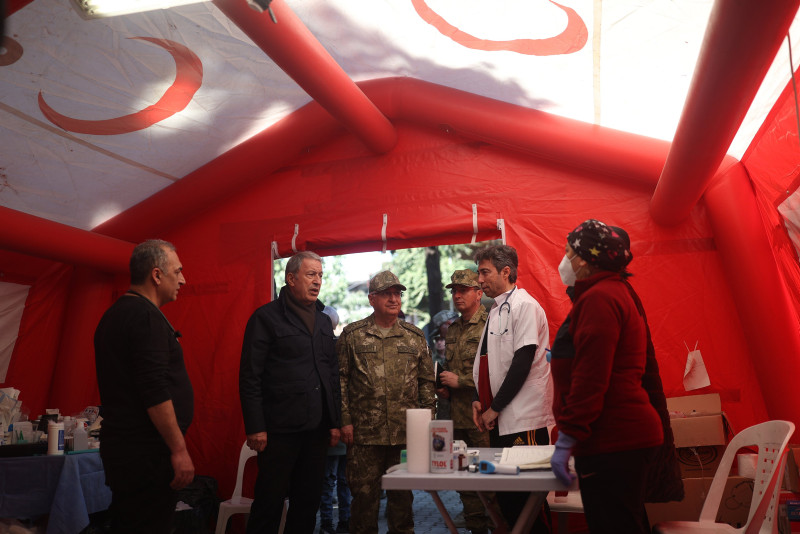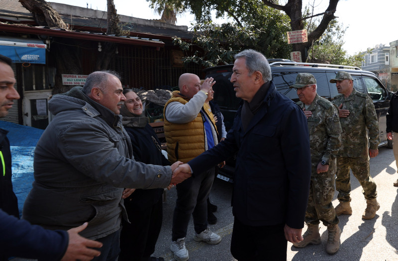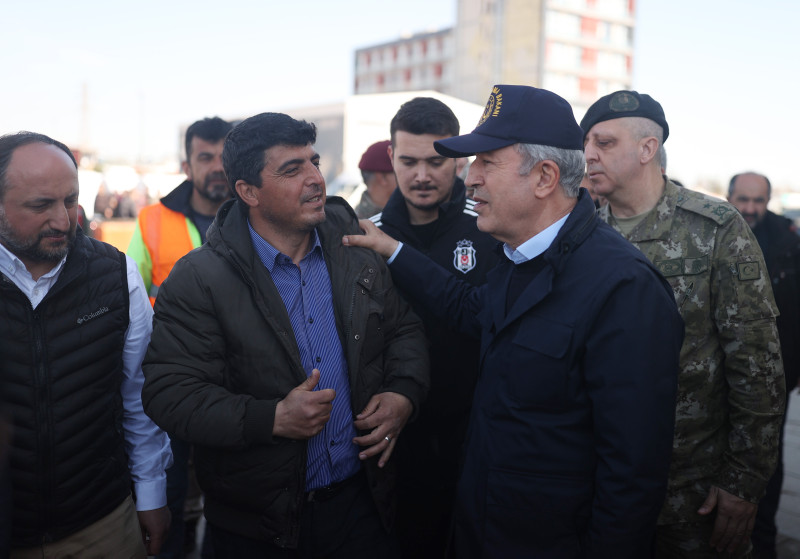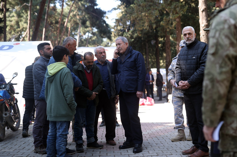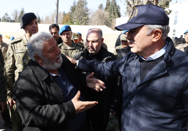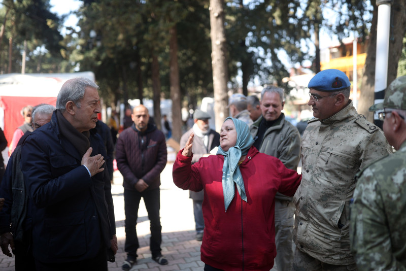 Milli Savunma Bakanı Hulusi Akar, Kahramanmaraş merkezli 7.7 ve 7.6 büyüklüğündeki depremlerde en fazla can kaybının yaşandığı Hatay'da basın mensuplarına açıklamalarda bulundu. Deprem Harekat Planı'nı saat saat açıklayan Bakan Akar, "TSK bölgede yok" eleştirilerine tepki gösterdi. TSK'nın 40 bin askerle deprem bölgesinde olduğunu açıklayan Akar, "Tüm askerleri yığarak olmaz. Bu işten anlayan teknik personeli kullanmak esas. Uzaktan ahkâm kesmekle olmuyor." ifadelerini kullandı.