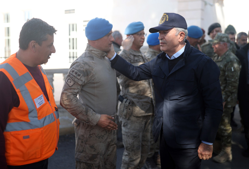 "Saat 04.50'de 2. Ordu Komutanımız Metin Gürak görevinin başındaydı ve birliklerden durum raporu almaya başladı. Saat 05.00'te Bakanlığımız bünyesinde Afet Acil Durum Kriz Merkezi teşkil edildi. Eş zamanlı olarak kriz merkezleri Genelkurmay ve Kuvvet Komutanlıklarında da çalışmaya başladı. Saat 05.00 itibarıyla Genelkurmay Başkanımızdan ve Kuvvet Komutanlarımızdan bilgileri aldık. Aldığımız ilk rapor, ilk bilgilerden Hatay Serinyol'da, bir binanın yıkıldığını, 3 askerimizin de şehit olduğunu öğrendik."