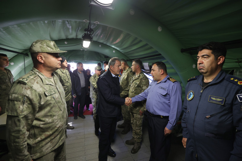 "Milli Savunma Bakanlığı, Türk Silahlı Kuvvetleri unsurları askeriyle, siviliyle, işçisiyle, teknik personeli ile ilk andan itibaren seferber olmuş, milletinin yanına, yardımına koşmuştur. Gece-gündüz demeden bu büyük deprem felaketinin açtığı yaraları sarmak için tüm gücüyle ilgili kurum ve kuruluşlarla koordineli bir şekilde gayretlerini aralıksız sürdürmektedir."