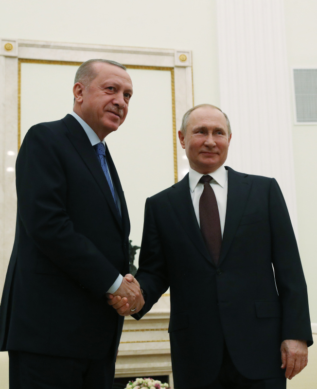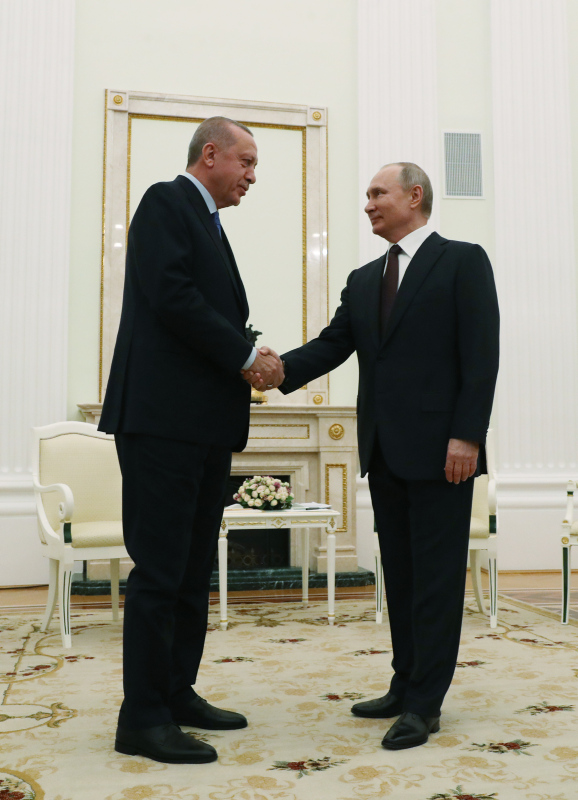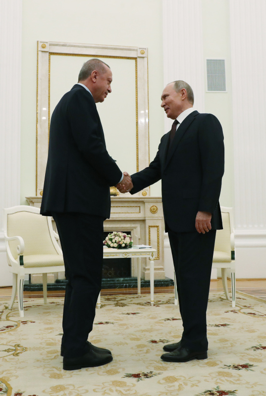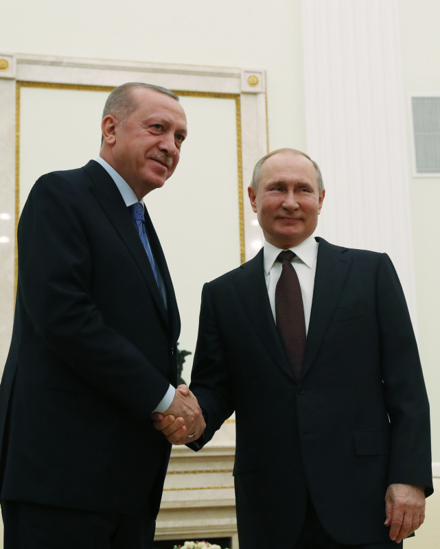 Başkan Recep Tayyip Erdoğan, Rusya Devlet Başkanı Vladimir Putin ile Moskova'da bir araya geldi. İki lider kritik görüşme öncesinde basın mensuplarına açıklamalarda bulundu. Cumhurbaşkanı Erdoğan, "Bölgede sıkıntı büyük. Bugün burada atacağımız adım, alacağımız isabetli kararlar, bölgeyi de ülkelerimizi de rahatlatacaktır." derken, Putin ise "Suriye'de hayatlarını yitiren askerleriniz için taziyelerimi ifade etmek istiyorum. Telefon görüşmemizde ifade ettiğim gibi hiç kimse orada Türk askerinin bulunduğunu bilmiyorlardı." ifadelerini kullandı. İşte tarihi zirveden ilk kareler...