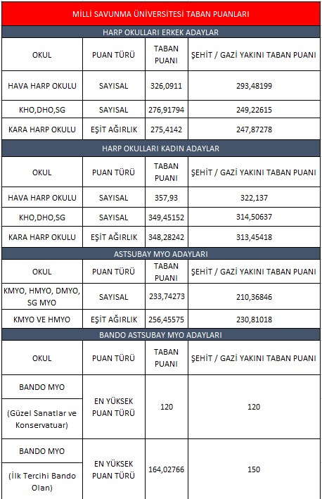 MSÜ puanı kaç yıl geçerli? 2021 MSÜ taban puanları kaç oldu? Milli Savunma Üniversitesi puan türleri nedir?