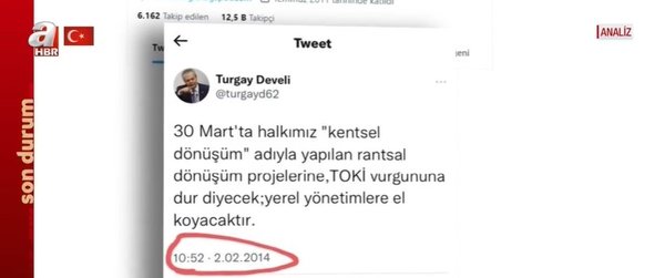 24. Dönem CHP Adana Milletvekili Turgay Develi'nin 2014'te yaptığı kentsel dönüşüm karşıtı paylaşımı sosyal medyada gündem oldu.