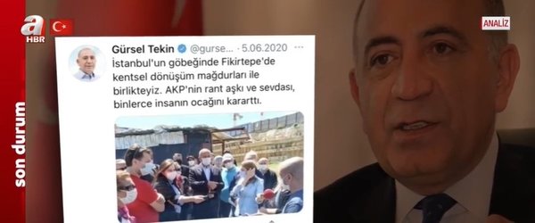 CHP'lilerin kentsel dönüşüme karşı çıktığı ifadeler bununla sınırlı değil. CHP İstanbul Milletvekili Gürsel Tekin'in İstanbul'da yapılan kentsel dönüşüme karşı "AK Parti'nin rant aşkı ve sevdası binlerce insanın ocağını kararttı" sözleri sürecin yavaşlamasına sebep olmuştu.