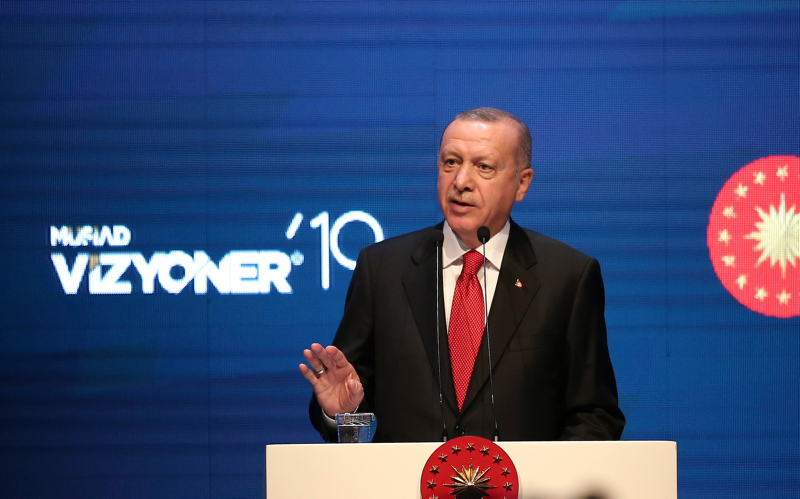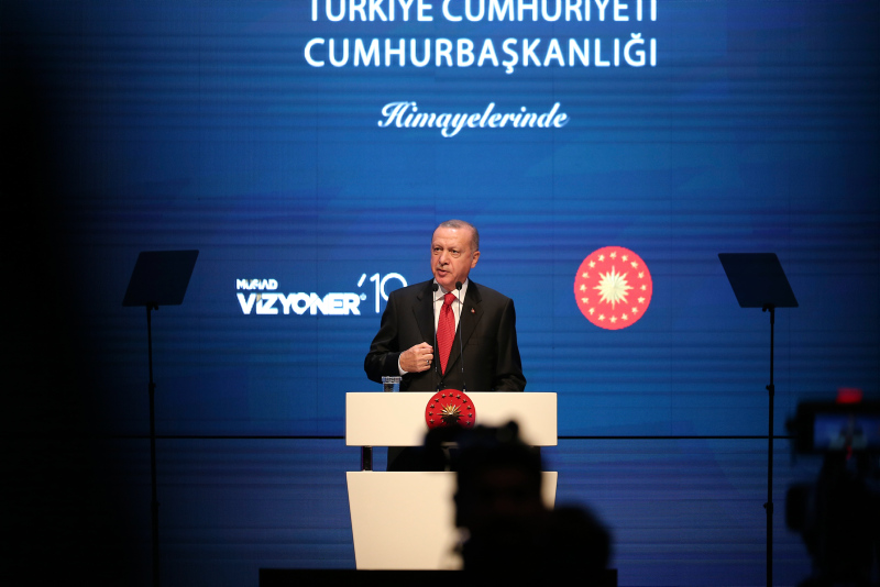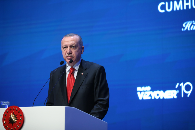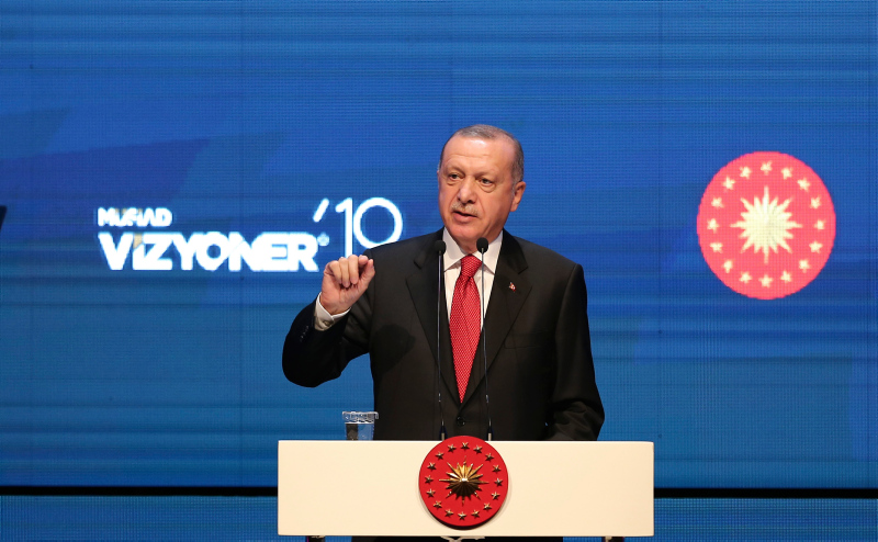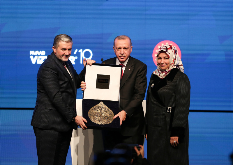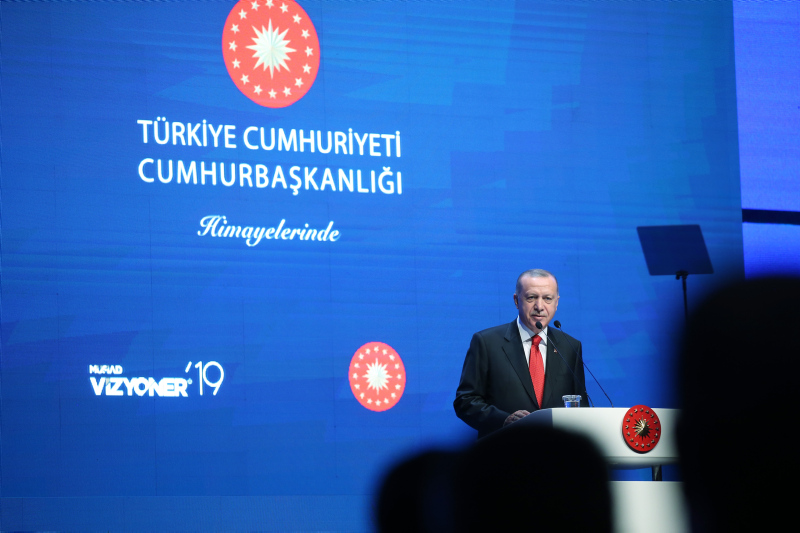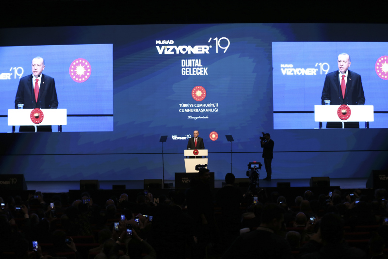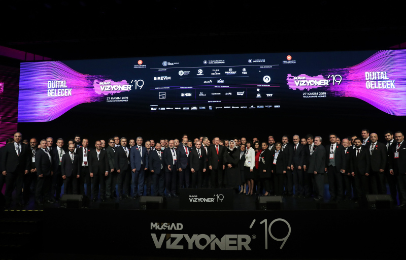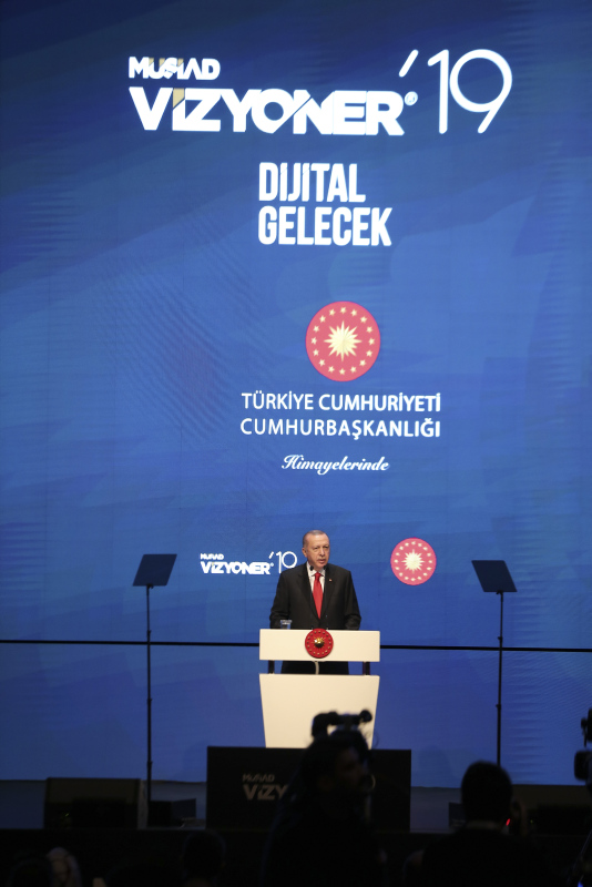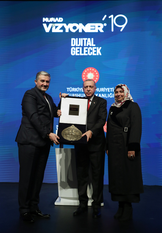 Başkan Recep Tayyip Erdoğan, MÜSİAD tarafından iki yılda bir düzenlenen ve bu yıl "Dijital Gelecek" temasıyla gerçekleştirilen Vizyoner Zirvesi'ne katıldı. Zirveye katılan Başkan Erdoğan'a, MÜSİAD Başkanı Abdurrahman Kaan tarafından usturlab hediye edildi.