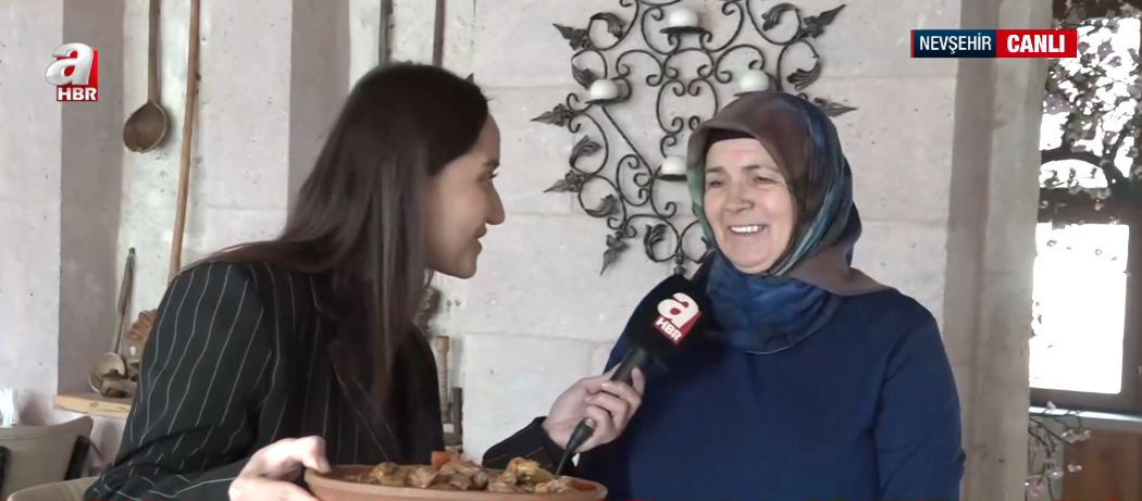 Kırılan testiden dumanı tüterek çömlek tabaklara dökülen bu tarihi lezzeti ekran başındakiler için anlatan Muhabir Yağmur Aksu, "Hem buharıyla hem lezzetiyle hem suyuyla iştah kabartan bir lezzet. İftar saatine yakın servis edilen testi kebabı sunumuyla da dikkat çekiyor." sözleriyle Kapadokya'daki bu benzersiz gastronomi şölenini izleyicilere aktardı.