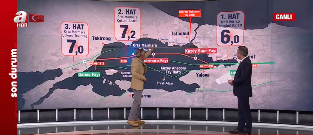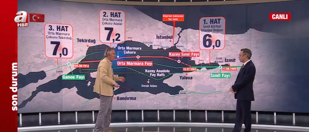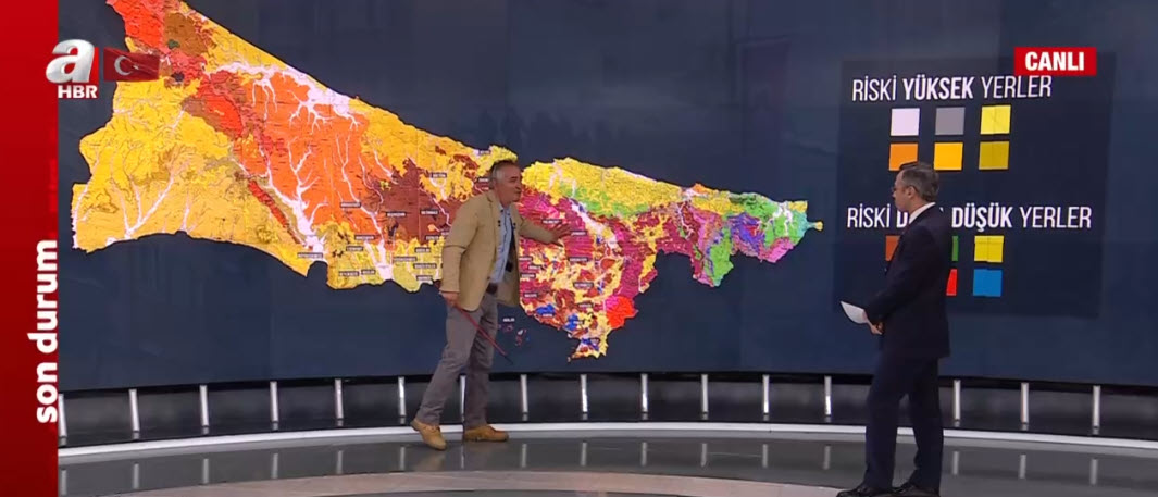 Son dakika DEPREM haberi... İstanbul'da zemin sıvılaşması var mı? İstanbul'un deprem risk haritası ne anlatıyor? İstanbul'un riskli ve sağlam ilçeleri hangileri? İstanbul'da 1,5 milyon konut hangi bölgelere taşınacak? Deprem nedir? Nasıl meydana gelir? Jeoloji Mühendisi Dr. İshak Yılmaz, A Haber canlı yayınında konu ile ilgili önemli değerlendirmelerde bulundu. İstanbul'da riskli ve sağlam bölgeleri harita üzerinde tek tek gösterdi.