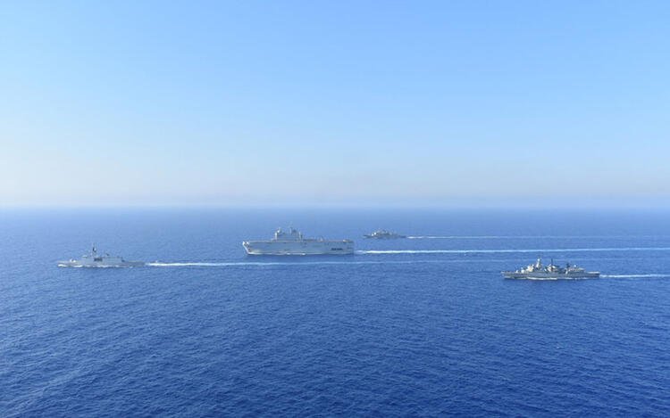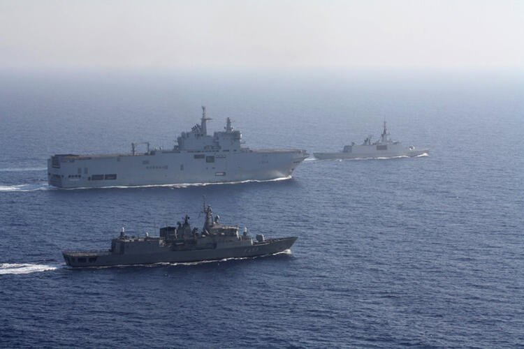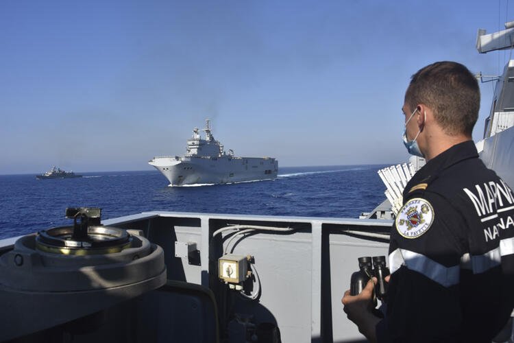 Fransa Cumhurbaşkanı Emmanuel Macron'un Doğu Akdeniz'e asker göndereceğini ilan etmesinin üzerinden 24 saat geçmeden, Yunanistan ve müttefiki Fransa Girit açıklarında ortak tatbikata girişti.