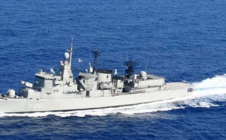 Sahadaki bozguna çok az yer veren Yunan medyası, Oruç Reis'e yaklaşmaya çalışan Lemnos fırkateyninin fotoğraflarını yayımladı.