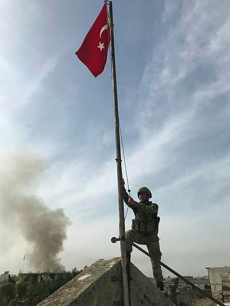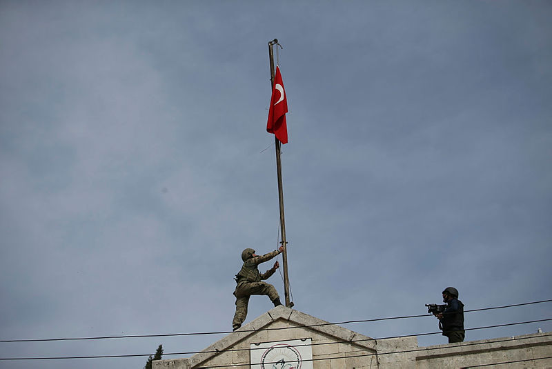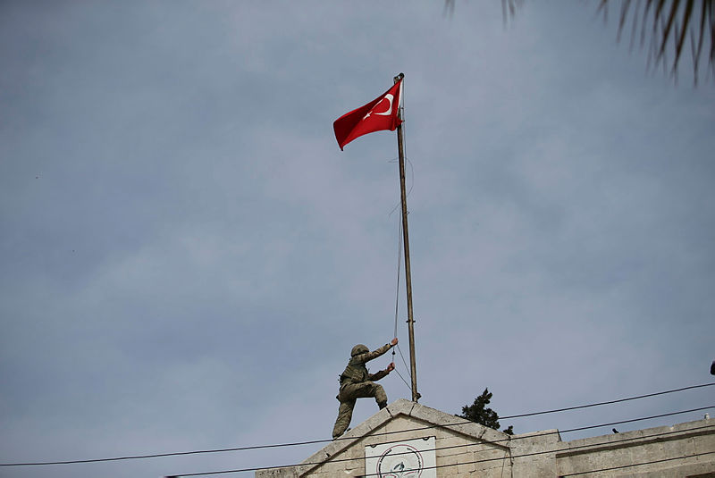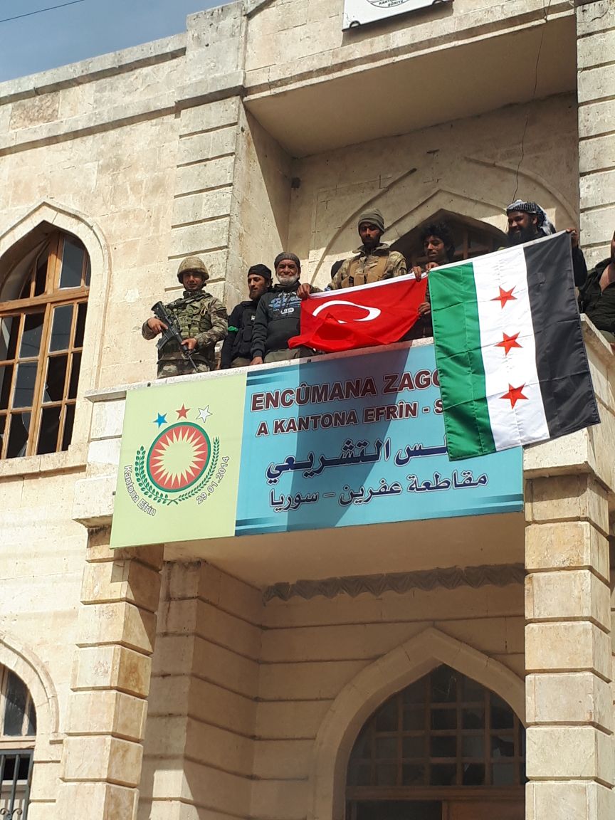 Afrin'deki teröristlerin temizlenmesi için başlatılan Zeytin Dalı Harekatı'nda Mehmetçik ve ÖSO birlikleri ilçe merkezini ele geçirdi.
