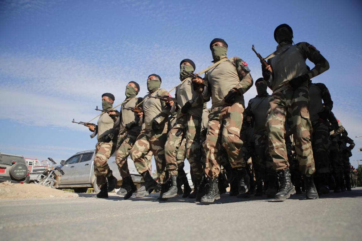 ÖSO bileşenlerinden Hamza Tümeni ve Süleyman Şah grupları, daha önce terörden arındırılan Afrin'de adeta savaş tatbikatı yaptı.