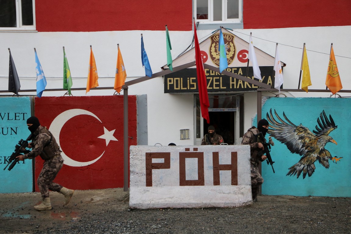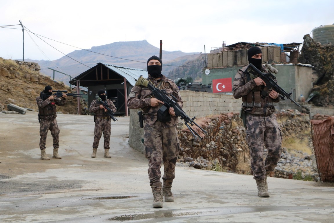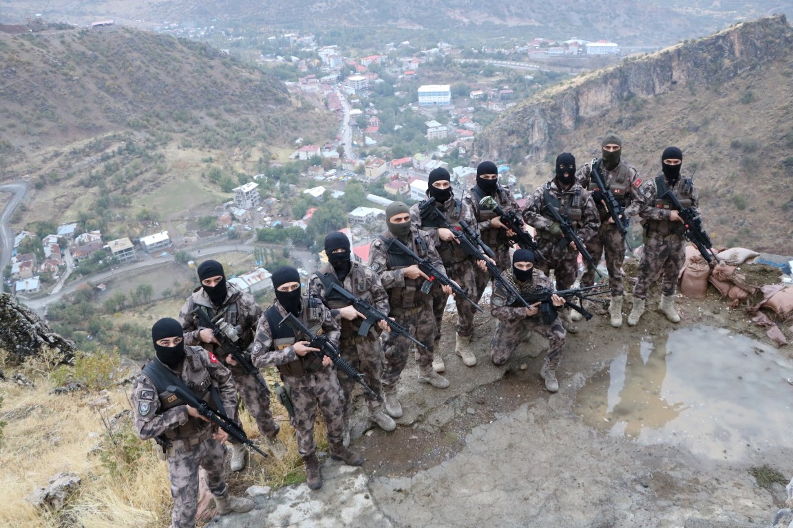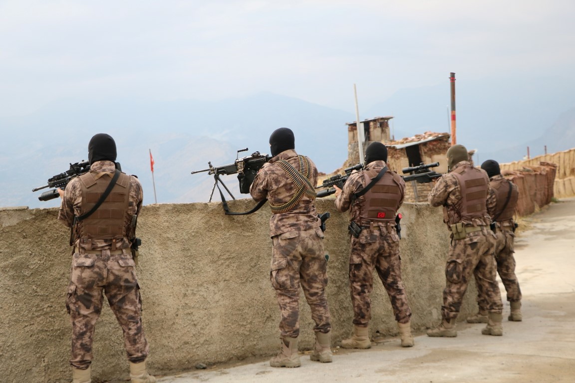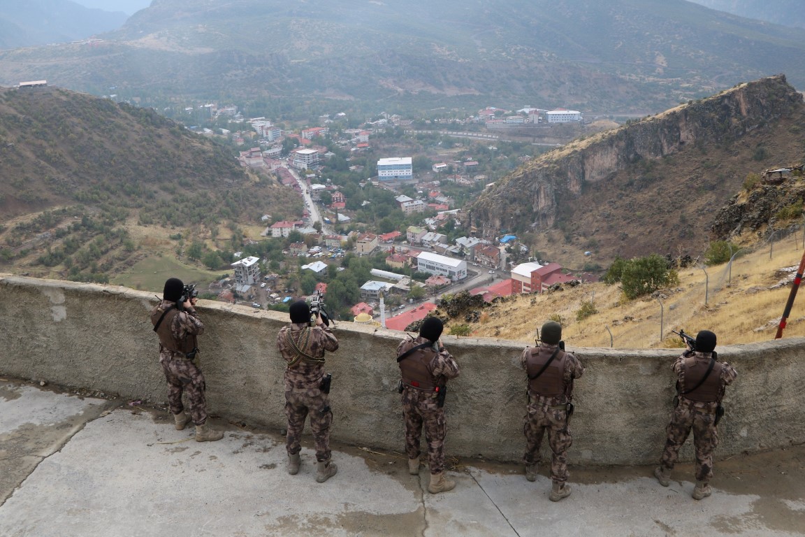Kendilerine 'Sınır Kartalları' diyen Çukurca İlçe Emniyet Müdürlüğü'ne bağıl Özel Harekat Şubesi'nde görevli polisler, ilçeyi kuşbakışı gören yüksek rakımlı tepelerdeki üs bölgelerinde nöbet tutuyor.