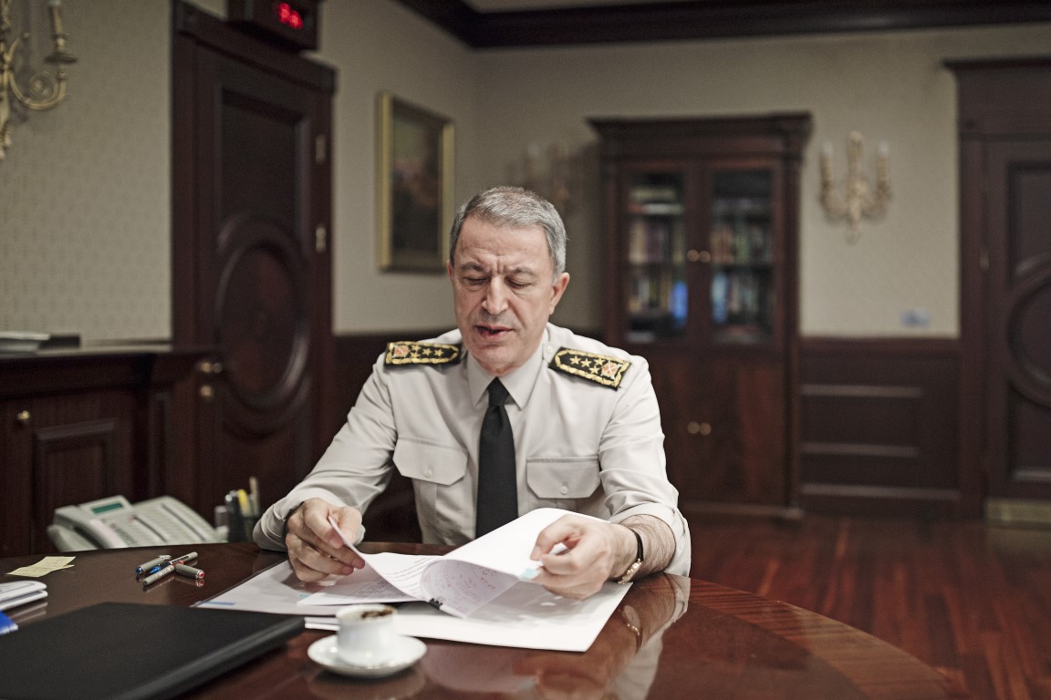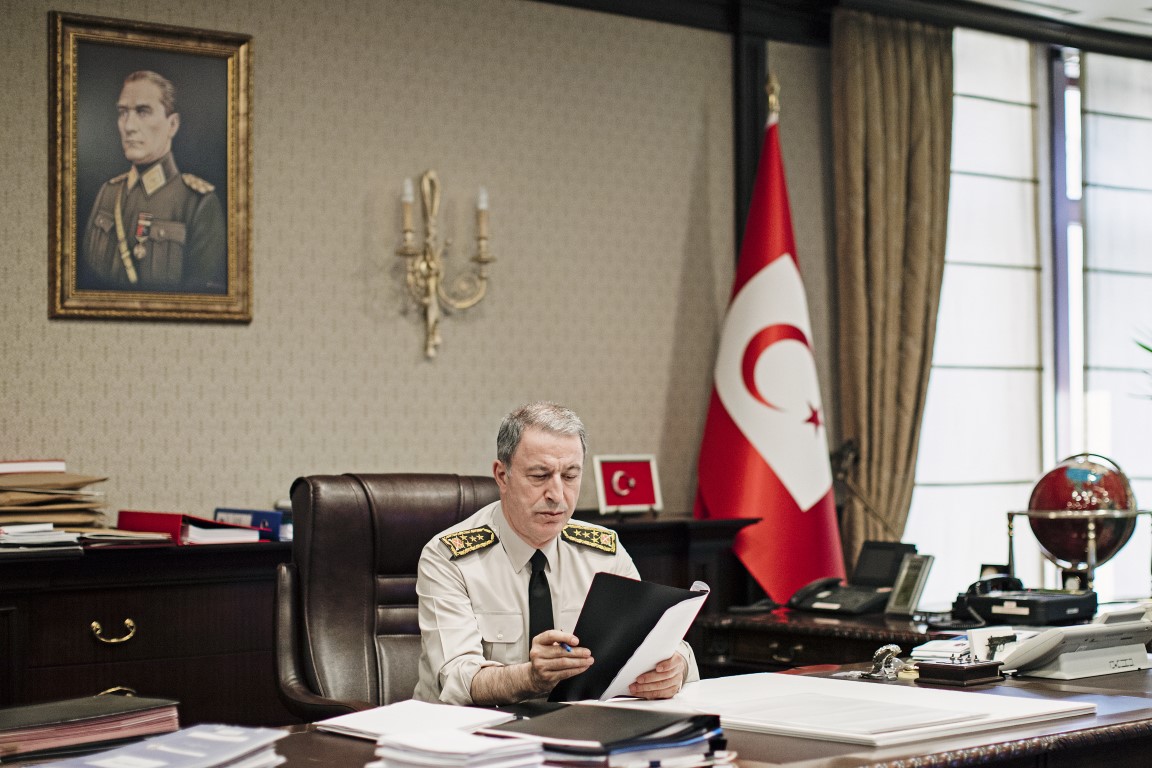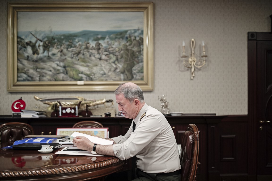 Hulisi Akar, Genelkurmay Başkanlığındaki makamında AA tarafından fotoğraflandı.