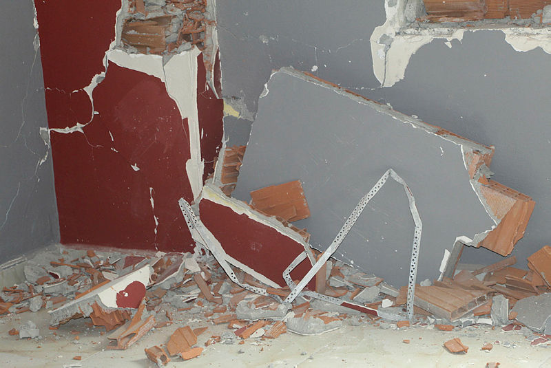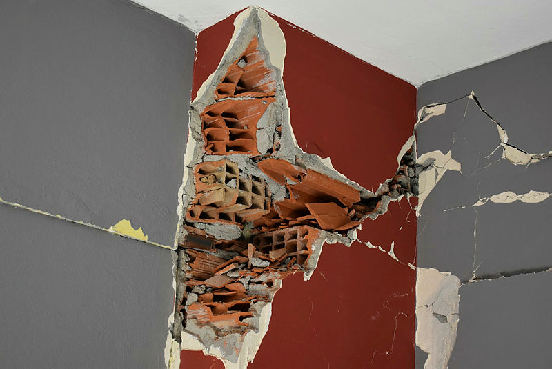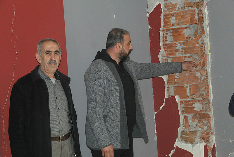 Batman'da, depremlerde hasar gören, 18 daireli Raman Apartmanı'nın patlayan 4 kolonundan tuğla çıktı. Binada oturanlar, sorumlular ve evleri satanlar hakkında suç duyurusunda bulundu.