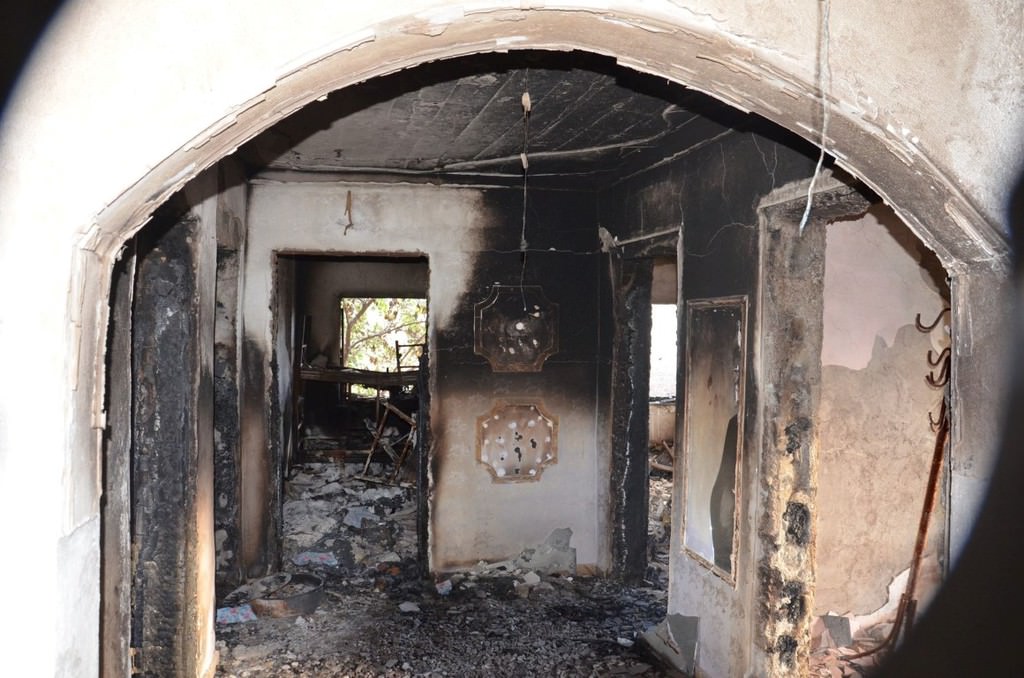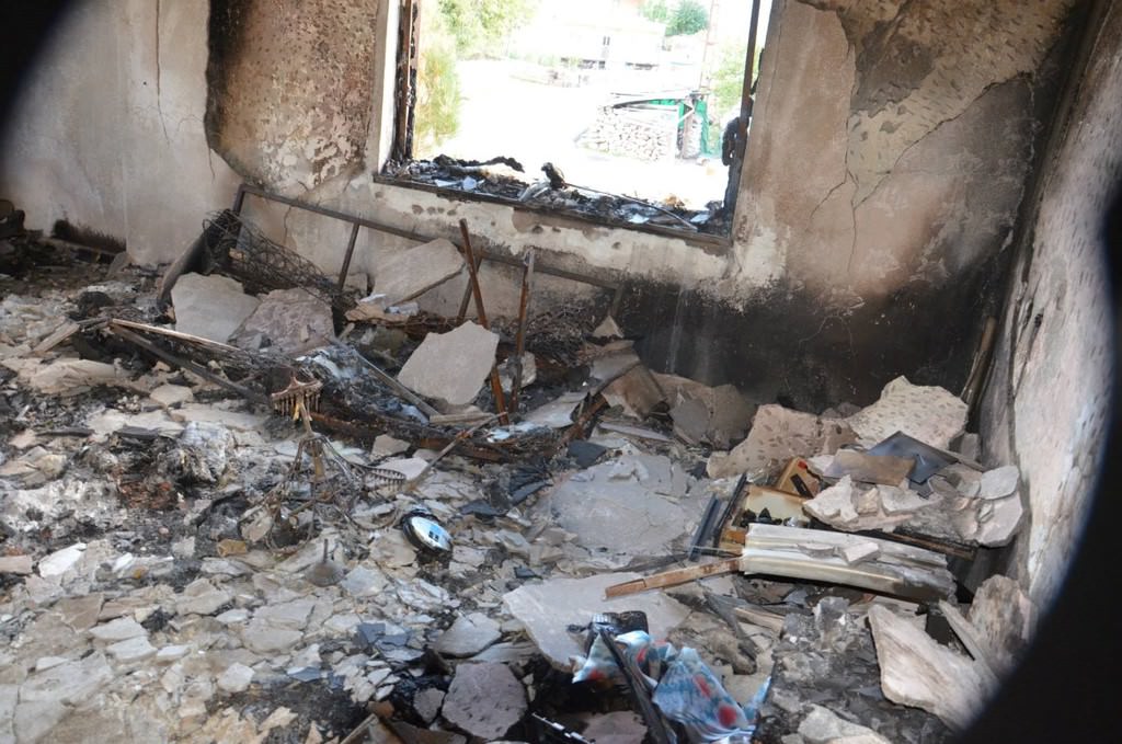 Göstericiler tarafından ateşe verilen evlerde, yakılan Kur'an-ı Kerim'ler de bulunuyor.