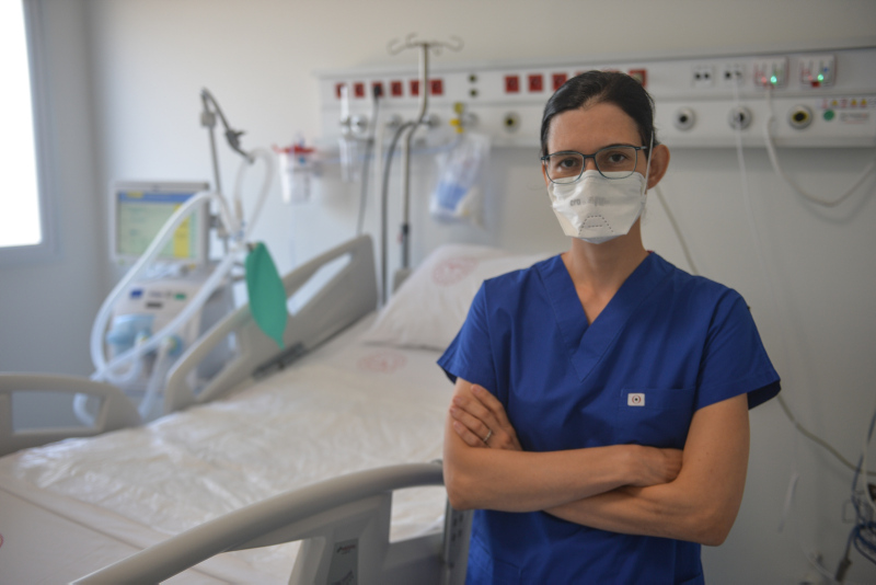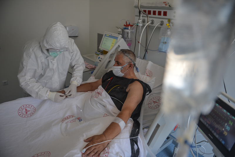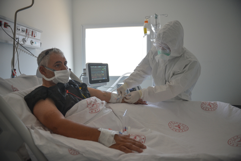 "Yoğun bakım hasta odalarına iki kapıdan geçilerek girilebiliyor. Negatif basınçlı odalar sayesinde içerideki virüslü havanın sirkülasyonu diğer alanlara geçmiyor. Filtrelerde tamamen temizlenip temiz hava olarak dışarıya atılıyor. O yüzden de personelimiz ve biz, hasta odaları dışındaki alanlarda yorucu koruyucu ekipmanları sürekli kullanmak zorunda kalmıyoruz. Sadece maske ve bonelerimiz bile yeterli olabiliyor. Burayı diğer hastanelerin yoğun bakımlarından ayıran en önemli özelliği bu. Normal yoğun bakımlarda negatif basınçlı odalar olmaz. Hastalar da arena şeklindeki alanlarda bir arada takip edilir. Ama pandemi hastanelerinde, enfeksiyon hastalıkları ile ilgili, bu tür bulaşıcı hastalıklarla ilgili kliniklerde negatif basınç ve tek kişilik izole odalar çok önemli. Biz burada bunu sağladığımız için hem hasta hem çalışan açısından daha güvenli bir ortam oluyor. Hastalarının odaları dışındaki bölgelerde virüsten arındırılmış alanlar oluşturabiliyoruz. Pandemi hastanelerindeki planlama o yüzden normal yoğun bakımlardakinden çok farklı."