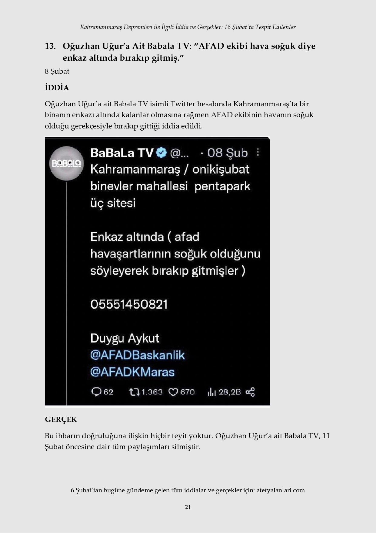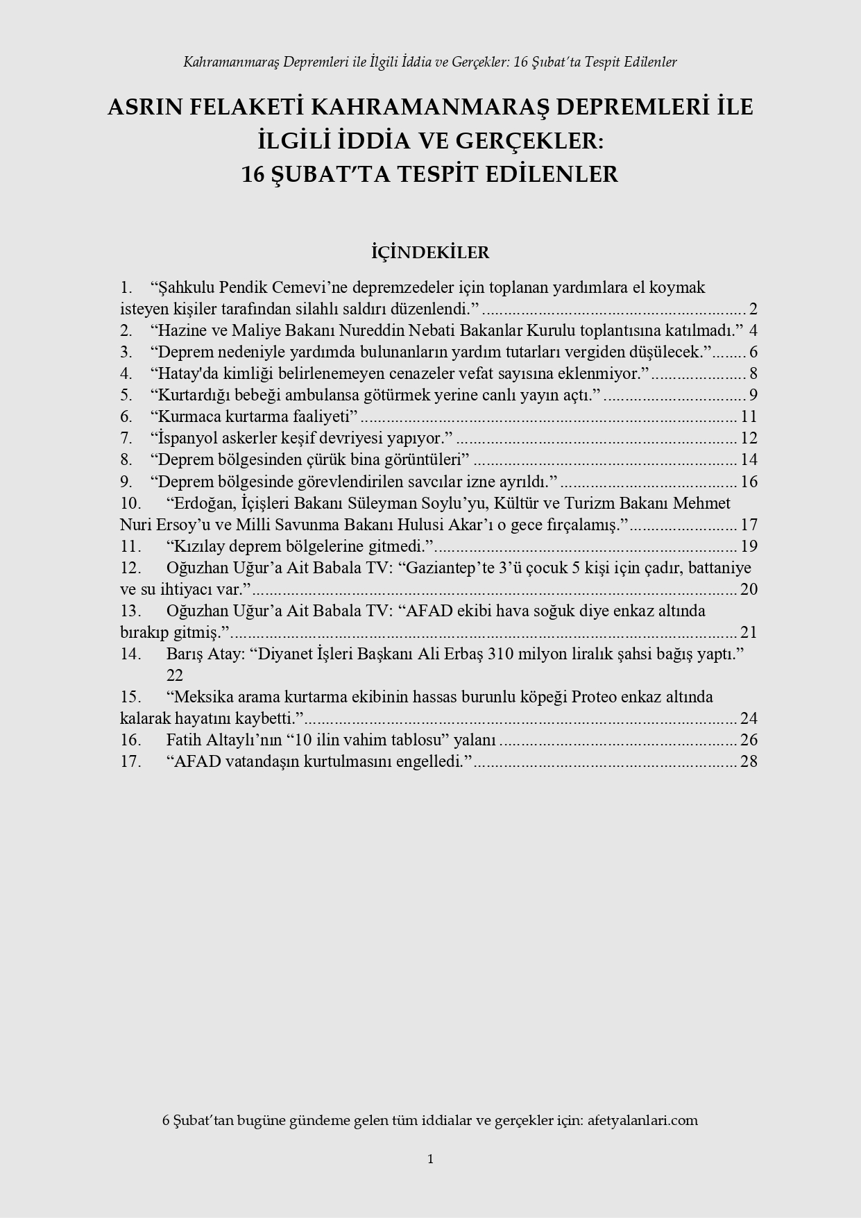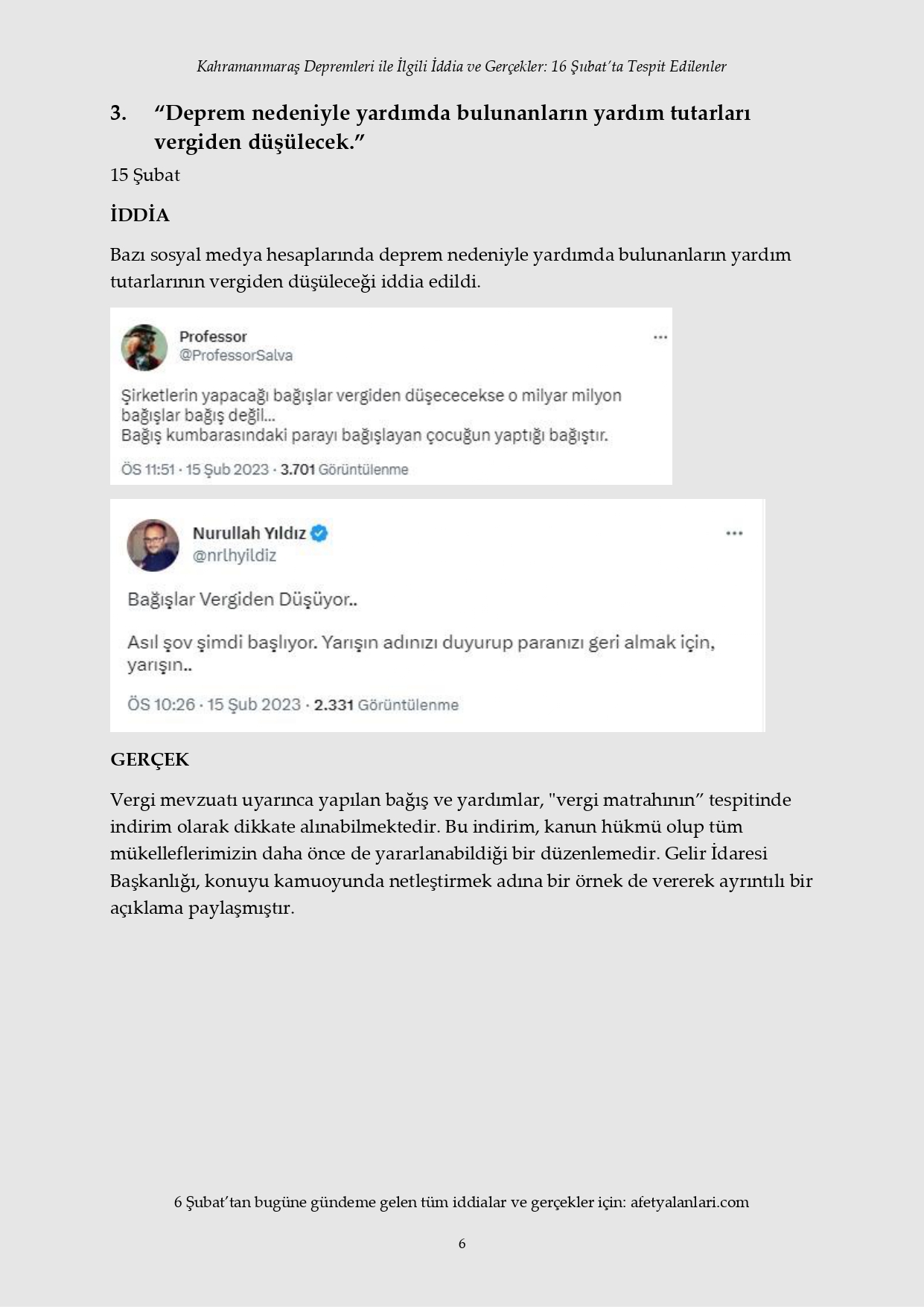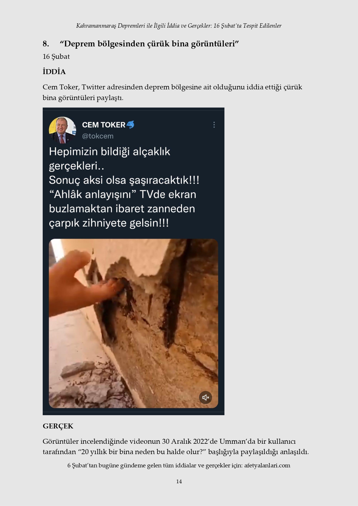 Kahramanmaraş depremi sonrası devlet tüm imkanlarını depremzedeler için seferber ederken, provokatörler sosyal medya ve fondaş basın üzerinden yalanlara başladı. Depremin 12. gününe gelinmesine rağmen iftiralar devam ederken, yalan bilgiler de tek tek çürütülüyor. İşte 16 Şubat'ta tespit edilen yalanlar...