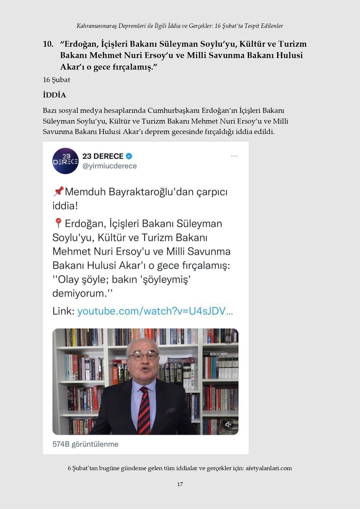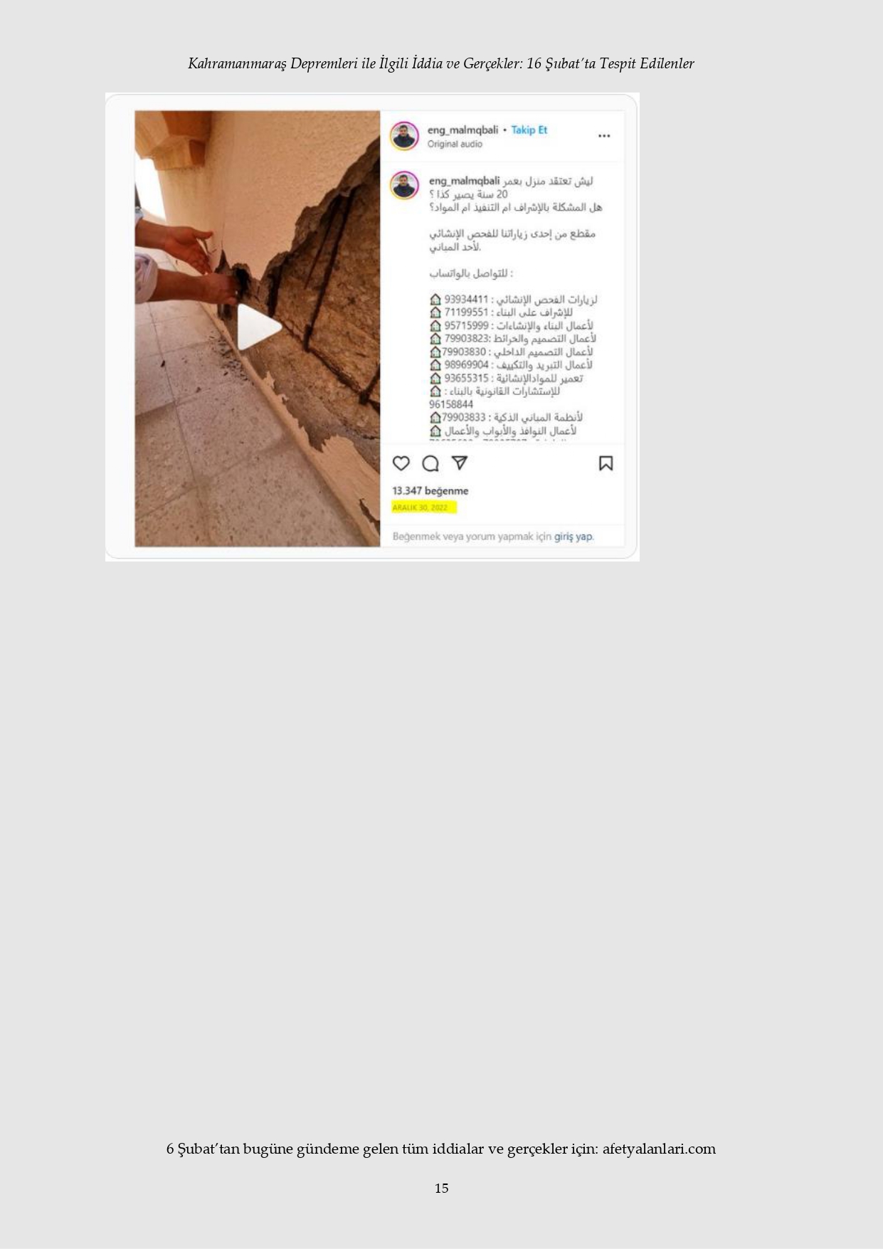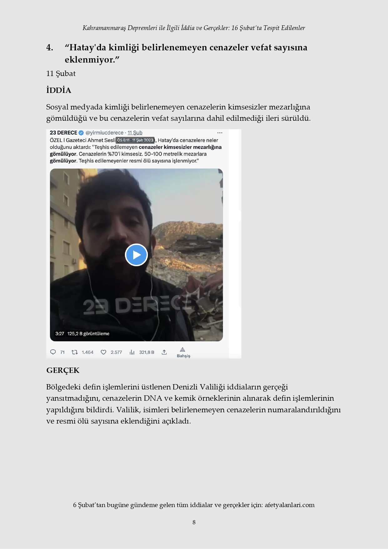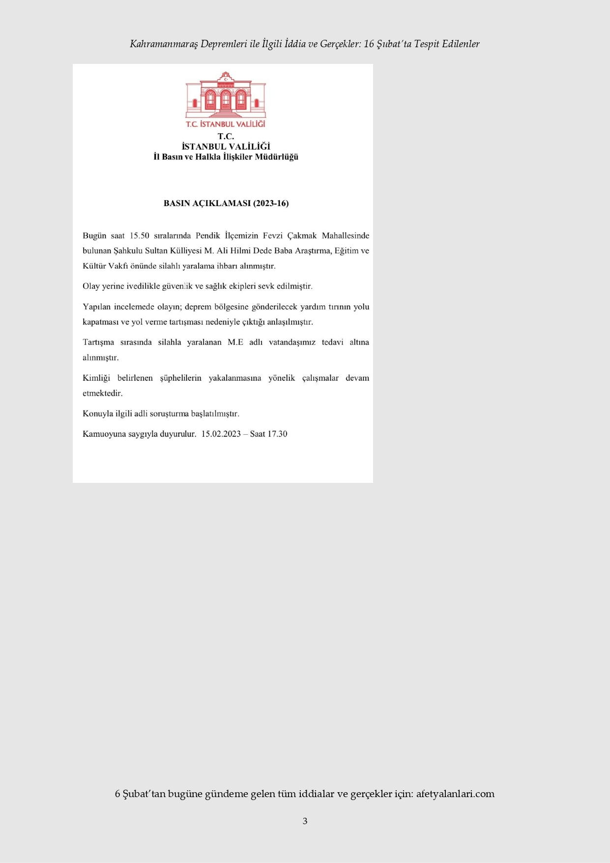 Kahramanmaraş depremi sonrası devlet tüm imkanlarını depremzedeler için seferber ederken, provokatörler sosyal medya ve fondaş basın üzerinden yalanlara başladı. Depremin 12. gününe gelinmesine rağmen iftiralar devam ederken, yalan bilgiler de tek tek çürütülüyor. İşte 16 Şubat'ta tespit edilen yalanlar...