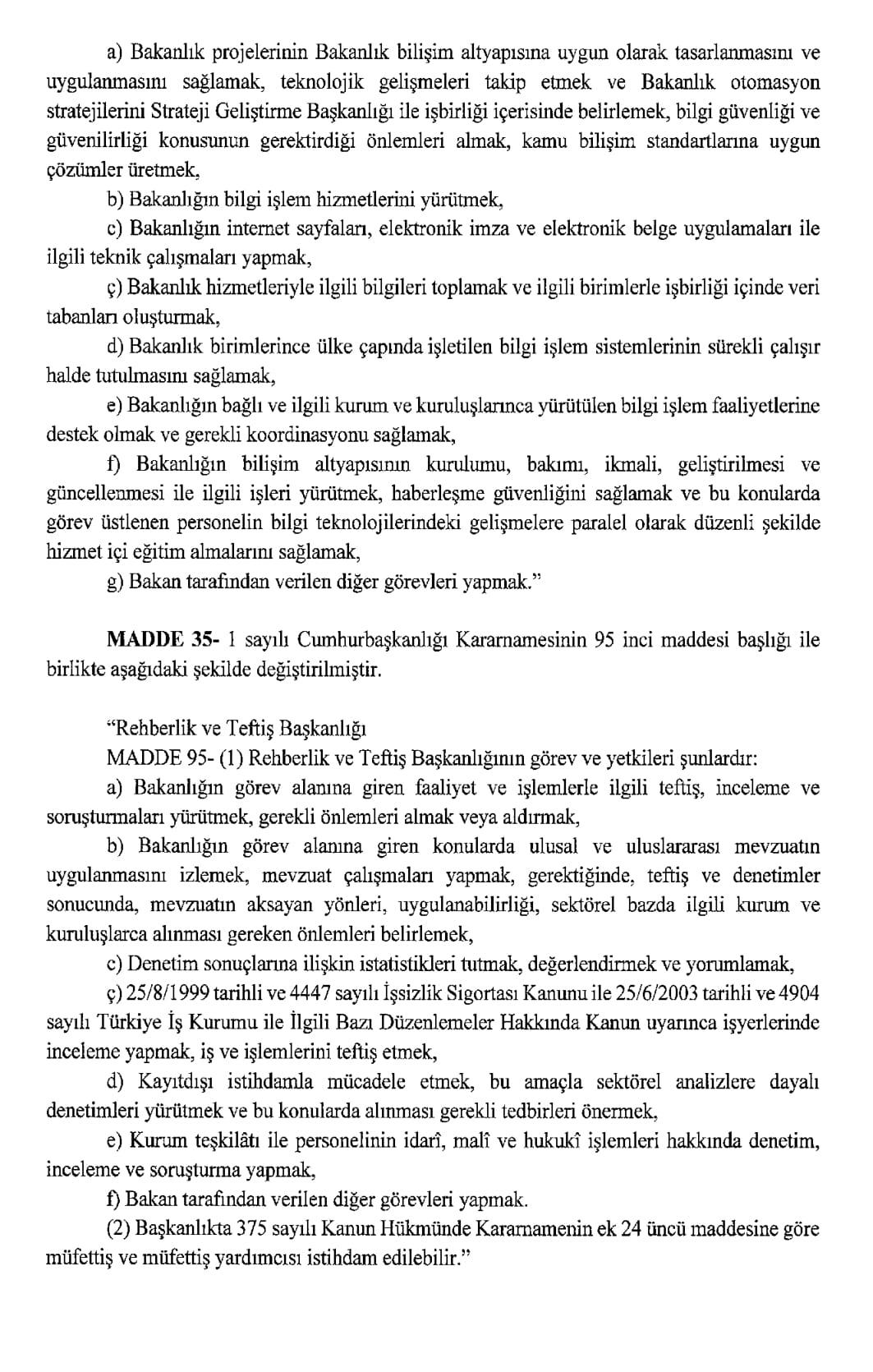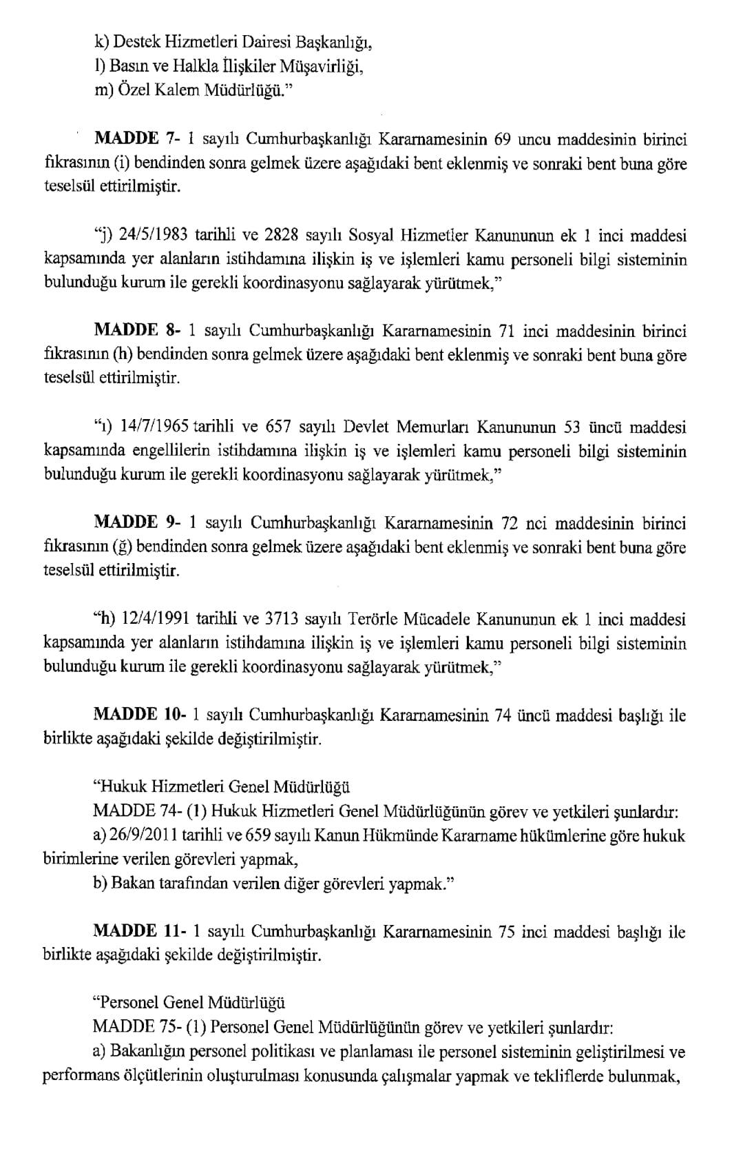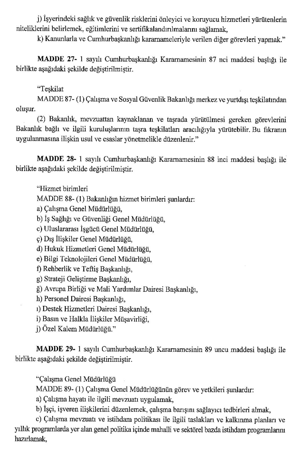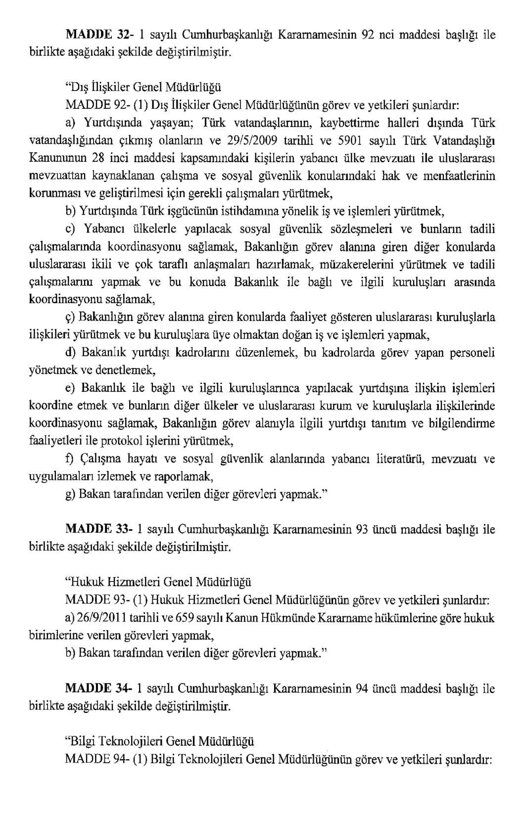 Resmi Gazete'de yayımlanan karara göre, Aile ve Sosyal Hizmetler Bakanlığı ile Çalışma ve Sosyal Güvenlik Bakanlığı kurulmasına dair Cumhurbaşkanlığı Kararnamesi yayımlandı.