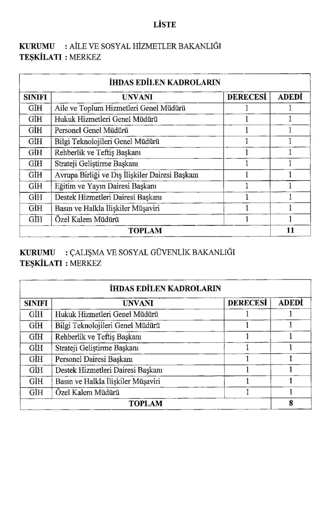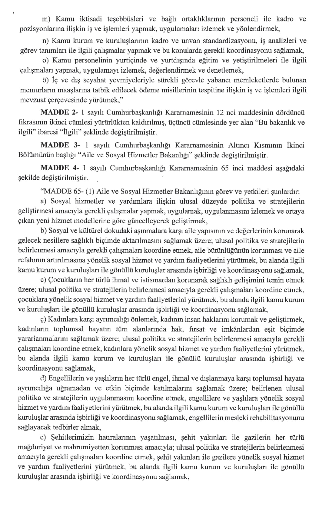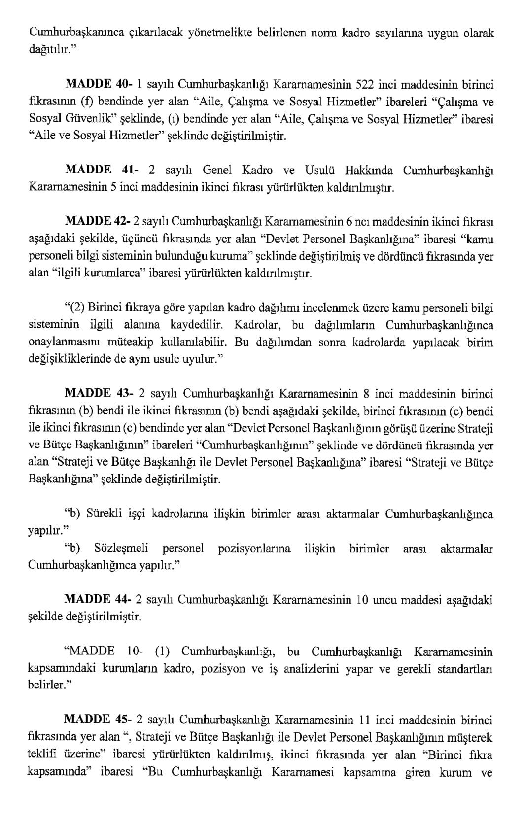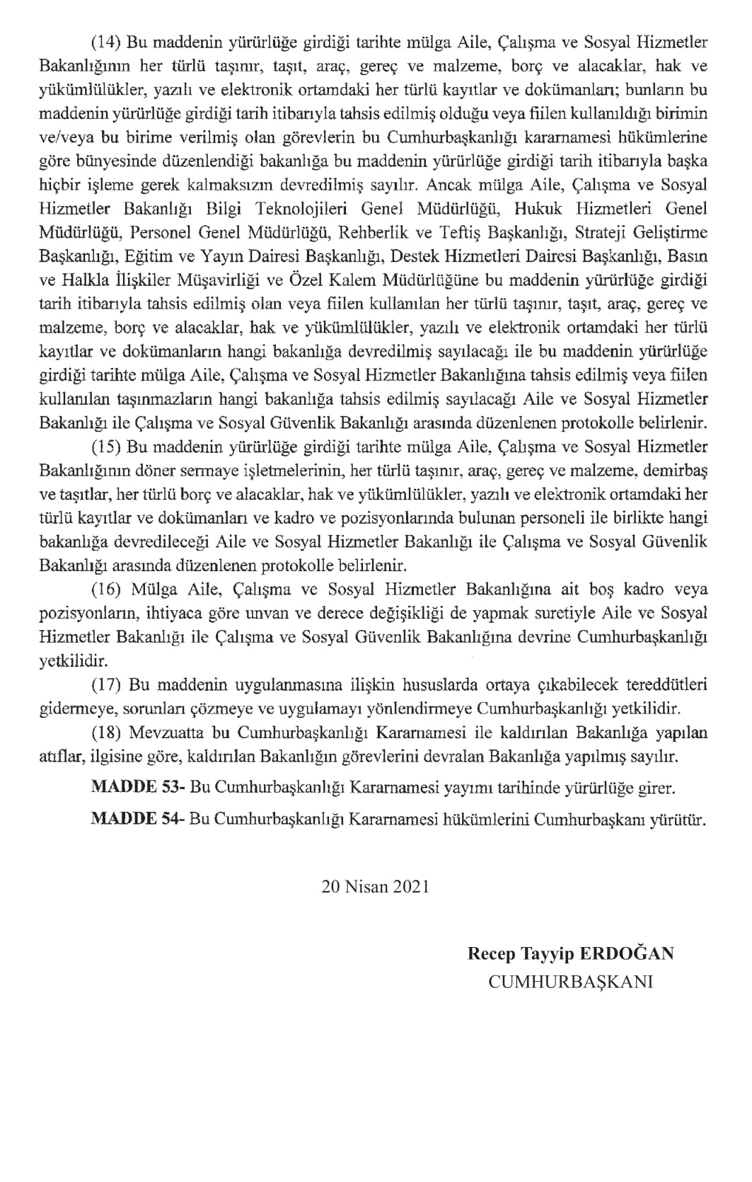 Resmi Gazete'de yayımlanan karara göre, Aile ve Sosyal Hizmetler Bakanlığı ile Çalışma ve Sosyal Güvenlik Bakanlığı kurulmasına dair Cumhurbaşkanlığı Kararnamesi yayımlandı.