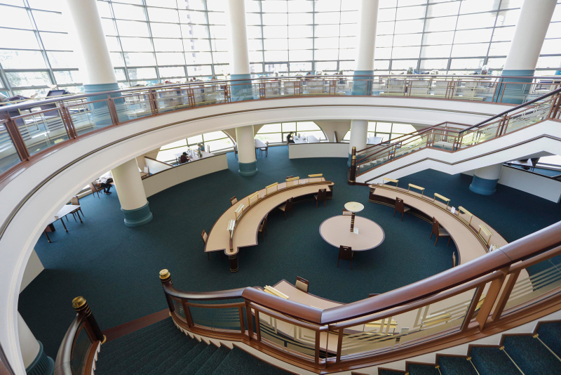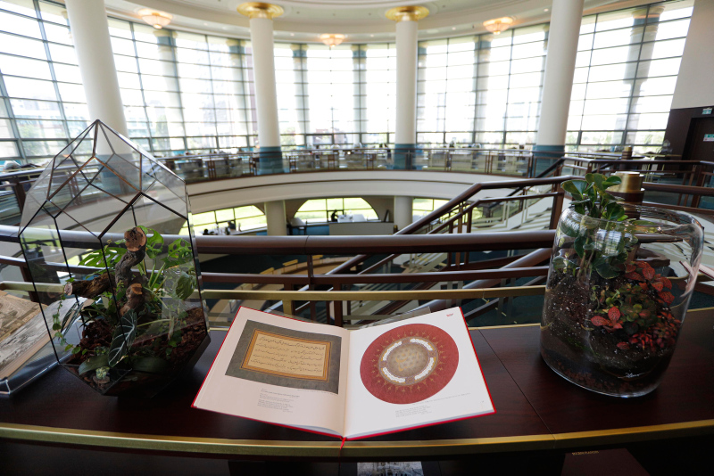 'Kütüphanenin kalbi' olan Cihannüma Salonu, Cumhurbaşkanlığı forsunda yer alan 16 Türk devletini temsil eden 16 sütun üzerinde yükselirken, salonun kubbesinde Alak Suresi'nin 'O, kalemle yazmayı öğretendir, insana bilmediğini öğretendir' mealindeki 4'üncü ve 5'inci ayetleri yer alıyor.