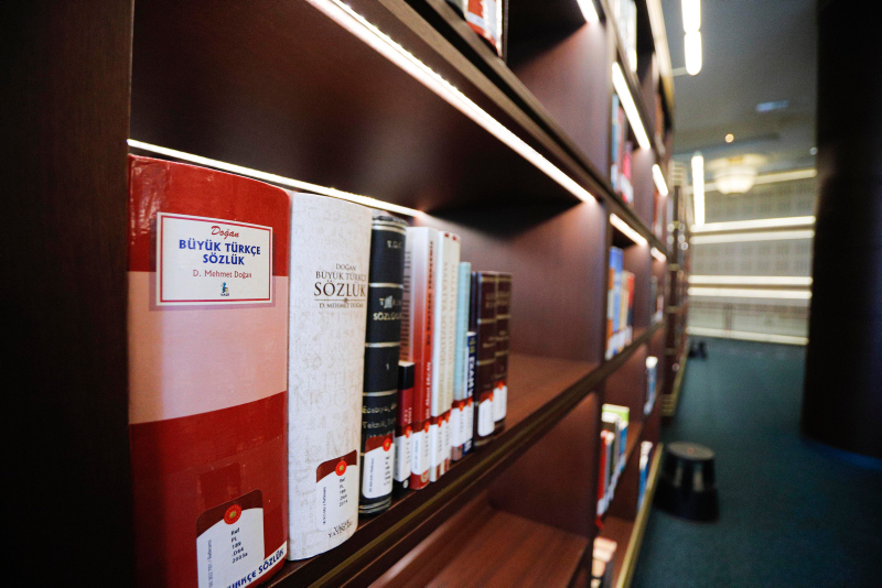 '4 AYDA 80 BİN YENİ KİTAP KOLEKSİYONA EKLENDİ' Cumhurbaşkanı Erdoğan'ın başlattığı kitap bağışlama kampanyasına yoğun katılımın olduğunu ve kütüphaneye her gün yeni kitapların geldiğini de belirten Tuğlu, "Günlük ortalama 1500'e yakın kitap giriyor. 4 ayda yaklaşık 80 bin civarında yeni kitap koleksiyona eklenmiş oldu. Sadece Türkiye'den değil, yurt dışından da geliyor. Katar'dan 2 önemli koleksiyonumuz gelmişti, henüz işlemlerine başlayamadık. Suudi Arabistan'dan yaklaşık 600 koli geldi. Cihannüma Salonu için Dışişleri Bakanlığı ile yürütülen ortak proje kapsamında 104 ülkeden yaklaşık 140 farklı dilde kitap geldi. Yabancı misyonların da kütüphaneye ilgisi bir hayli fazla. Şu anda 150 dile doğru yaklaşıyoruz. Dünyanın en büyüğü Amerikan Kongre Kütüphanesi ve 490 civarında dilde kitapları var; ama orası 1800 yılında kurulmuştu. Biz 2020 yılında kurulan bir kütüphaneyiz, eminim ki biz de hızlı bir şekilde ilerleyeceğiz" diye konuştu.