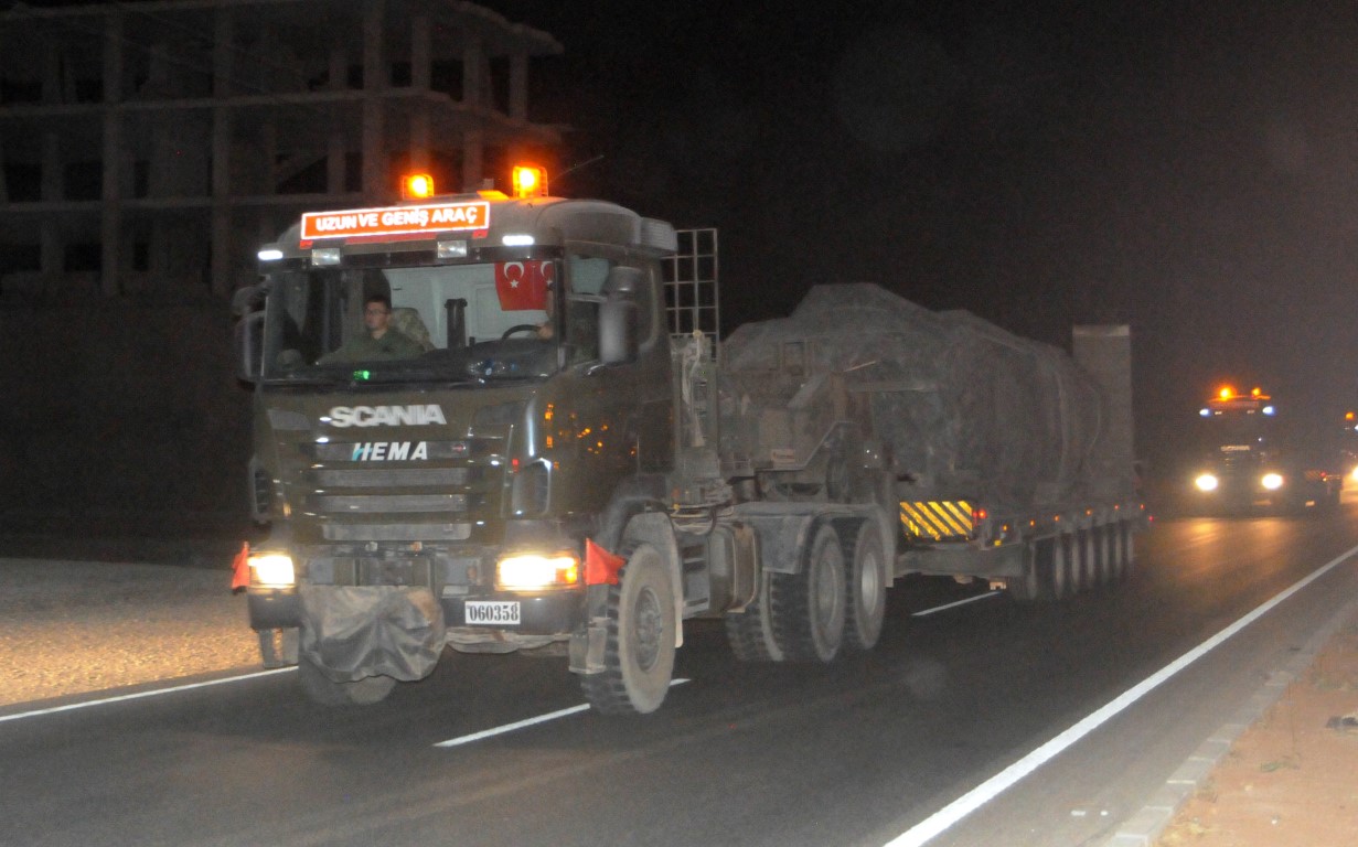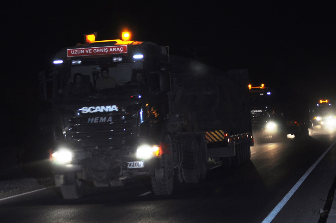 Şanlıurfa'daki 20. Zırhlı Tugay Komutanlığından çıkış yapan zırhlı araç yüklü 9 tır ve içerisinde askeri personelin bulunduğu 1 otobüsten oluşan konvoy, güvenlik önlemleri altında sınır hattındaki Akçakale ilçesine ulaştı.
