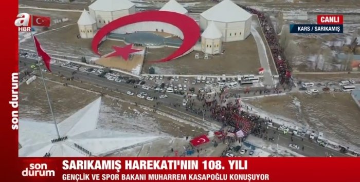 Kars'ın Sarıkamış ilçesinde, Sarıkamış Harekatı'nın 108. yılı anma etkinlikleri çerçevesinde düzenlenen yürüyüş başladı. Yürüyüşe Gençlik ve Spor Bakanı Mehmet Muharrem Kasapoğlu, Aile ve Sosyal Hizmetler Bakanı Derya Yanık'ın yanı sıra Türkiye'nin birçok ilinden ve yurt dışından genç, yaşlı çok sayıda vatandaş katılıyor. Sarıkamış Harekatı'nın 108. yılı töreninde önemli mesajlar veren Bakan Kasapoğlu Bakan Kasapoğlu, "Geçen 20 yılda "gerçekleşemez, yapılamaz" denen her bir adımı ve hedefi yakaladık. Aynı azimle yarınlara yürüyeceğiz. Türkiye Yüzyılı, gençlerin omuzunda yükselecek." dedi