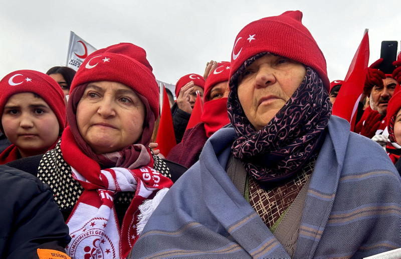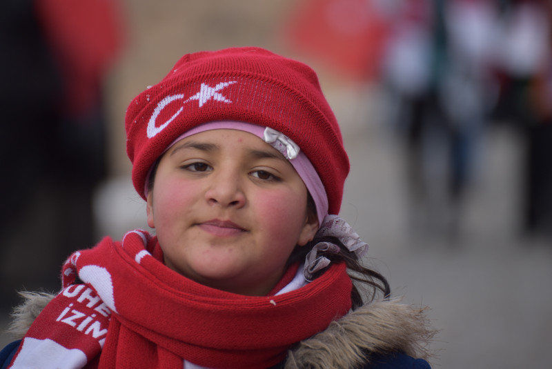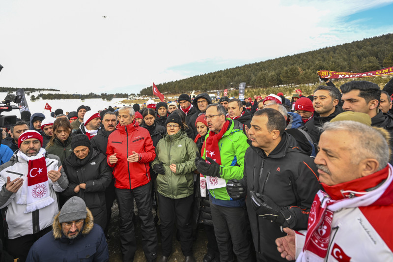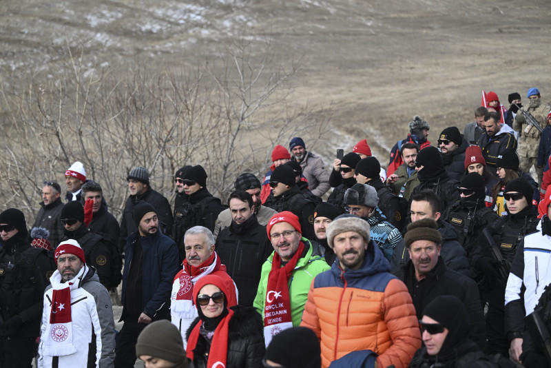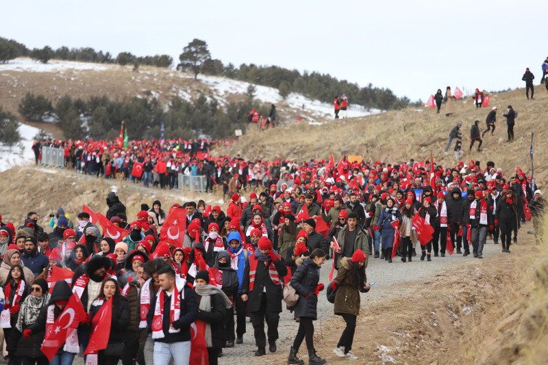 Kars merkez ve Sarıkamış ilçesinden, otobüslerle zirveye ulaşan vatandaşlar, ellerinde Türk bayraklarıyla yürüyerek toplanma alanına geldi.