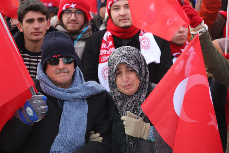 Enver Paşa komutasındaki Osmanlı ordusunun, 1. Dünya Savaşı'nda Rus işgali altındaki toprakları kurtarmak için başlattığı Sarıkamış Harekatı'nın 108. yılı anma etkinlikleri kapsamında düzenlenen şehitleri anma programına, soğuk havaya rağmen vatandaşlar ilgi gösteriyor.