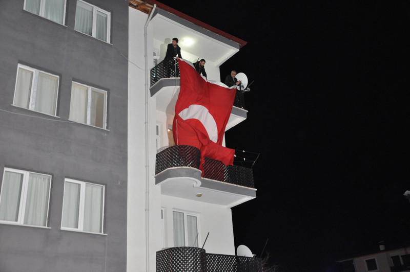 Arslan ailesinin yakınları ve mahalle sakinlerinin önünde toplandıkları şehidin evine ve sokağın girişine Türk bayrağı asıldı.