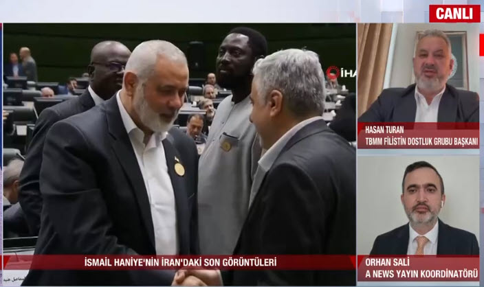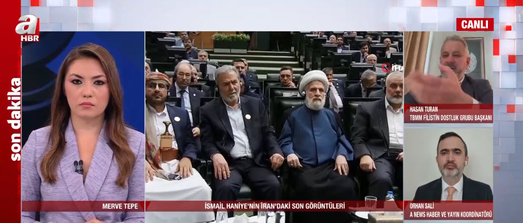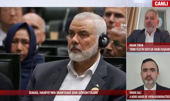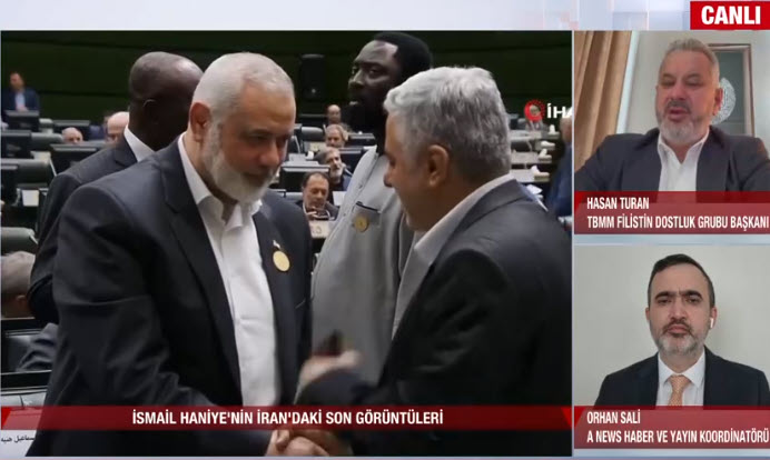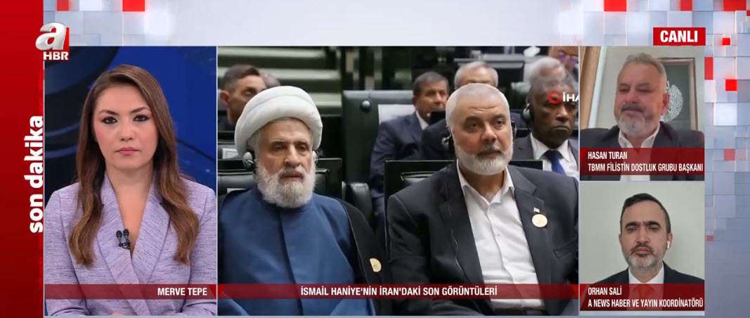 İsmail Haniye, Tahran'da uğradığı suikastte şehit edildi. TBMM Filistin Dostluk Grubu Başkanı Hasan Turan, A Haber canlı yayınında açıklamalarda bulundu. Turan, duygusal anlar yaşadı gözyaşlarına hakim olamadı.