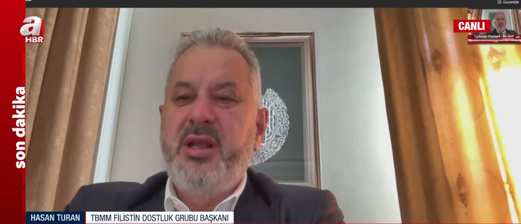 TBMM Filistin Dostluk Grubu Başkanı Hasan Turan, A Haber canlı yayınında konu ile ilgili açıklamalarda bulundu. Turan, duygusal anlar yaşadı gözyaşlarına hakim olamadı.