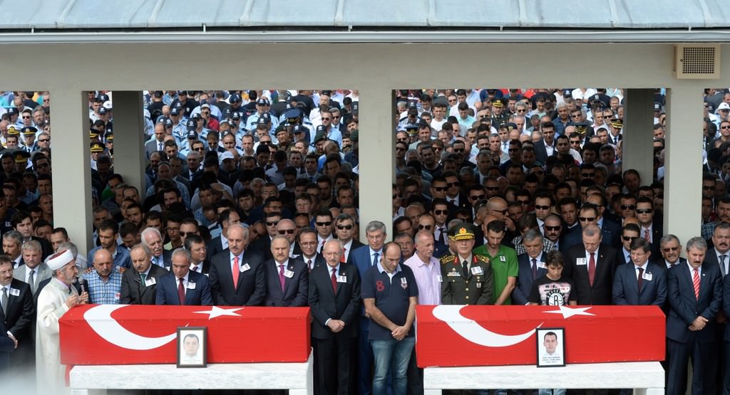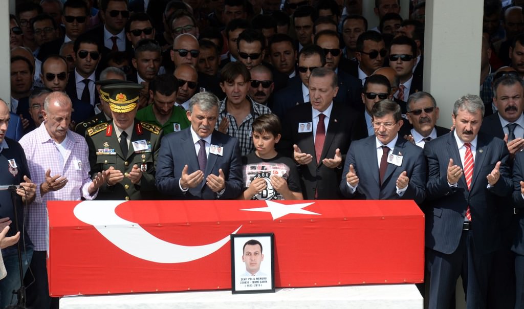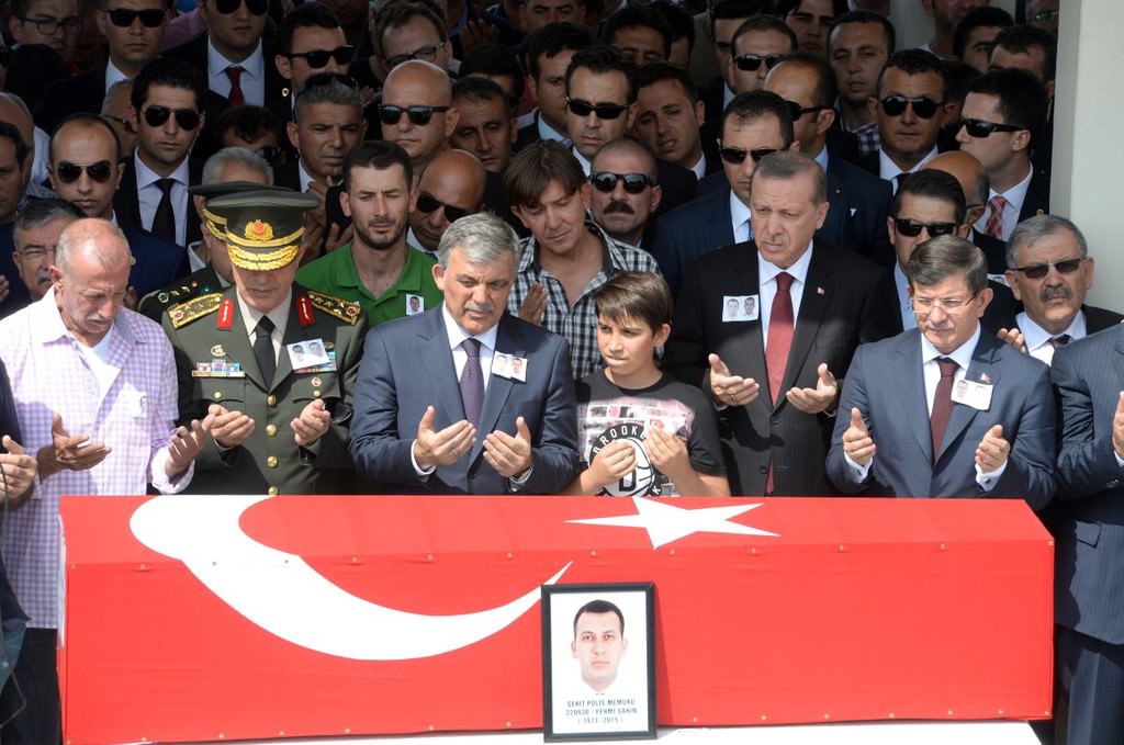 Namaza, Cumhurbaşkanı Recep Tayyip Erdoğan, 11. Cumhurbaşkanı Abdullah Gül, Başbakan Ahmet Davutoğlu, CHP Genel Başkanı Kemal Kılıçdaroğlu, Genelkurmay Başkanı Orgeneral Hulusi Akar ve şehit Fehmi Şahin'in oğlu Yağız da katıldı.