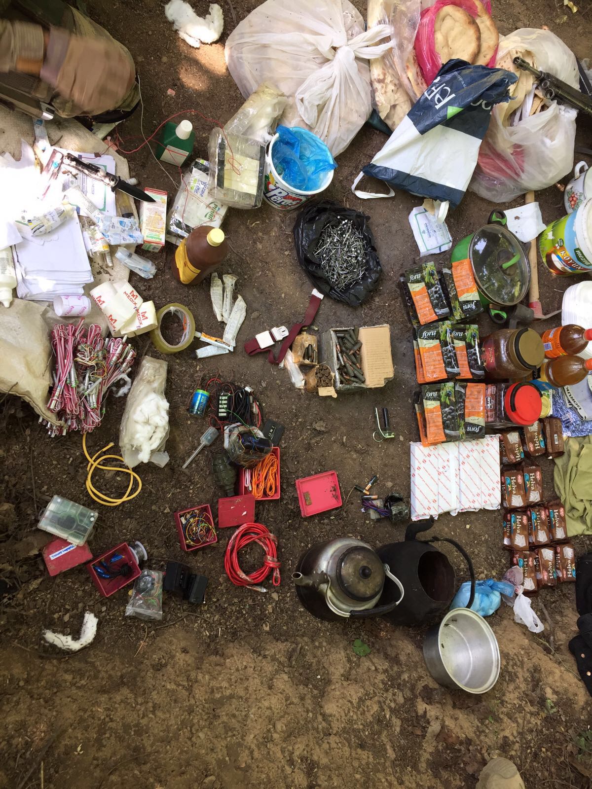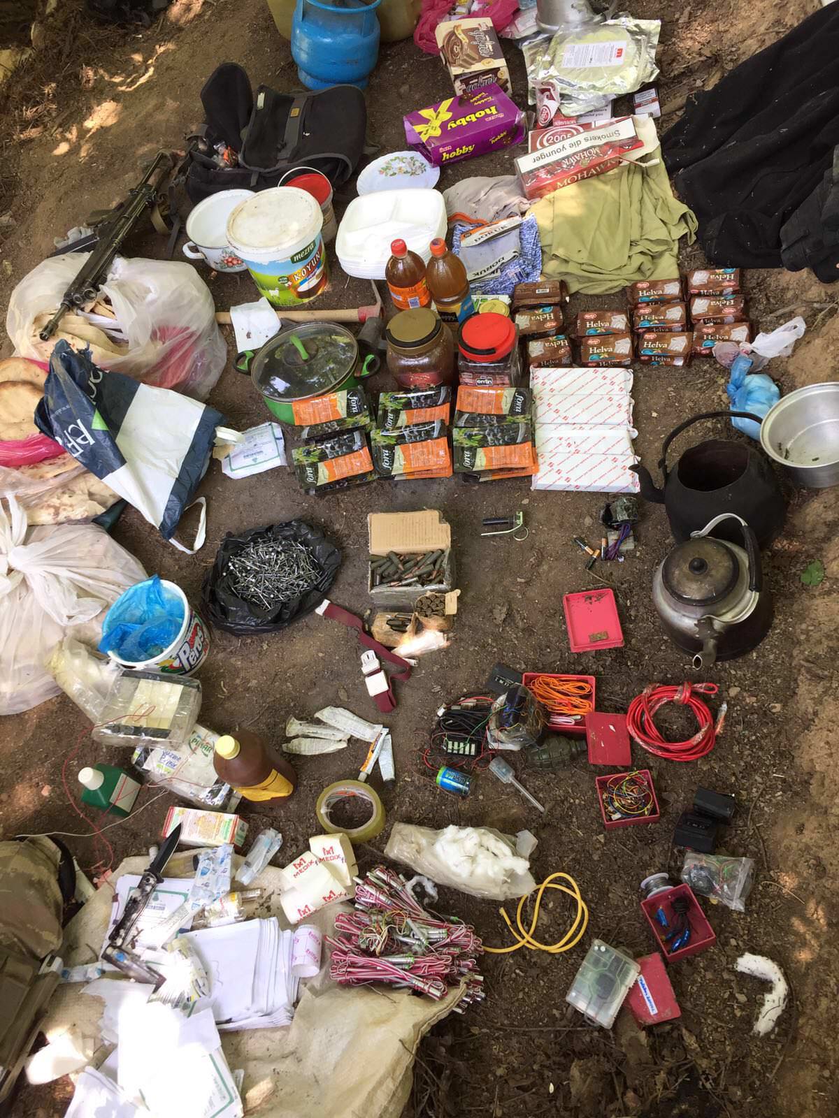 "30.07.2017 günü İlimiz Şemdinli İlçesi Altınsu Köyü İncesu Mezrasında Valiliğimizce ilan edilen sokağa çıkma yasağı neticesinde yürütülen operasyonlarda 3 farklı noktada yapılan arama ve tarama faaliyetinde; 2 adet anti tank rpg-7 mühimmatı,2 adet anti tank sevk fişeği,2 adet el yapımı anti tank mühimmatı atma sistemi (demir boru),60 adet elektrikli fünye,1 adet savunma tipi el bombası,12 kiloluk 2 adet mazotla güçlendirilmiş amonyum nitratlı EYP(el yapımı patlayıcı),2,5 lt saf nitrat,100 metre kablo,10 adet elektrik bandı,2 adet alphafire ateşleyici kumanda,1 adet toulsaria ateşleme düzeneği,30 adet oksijenli bez,2 adet batikon,15 adet koli bandı,4 adet enjektör,1 adet 500 ml serum,1 torba çivi,2 adet sırt çantası,1 adet keser,1 adet testere1, adet kazma,1 adet küçük tüp,3 adet tıbbi enjektör ampulü,1 adet roketatar silahı kullanma kılavuzu ile bölücü terör örgütü mensuplarına ait doküman ve çok sayıda yaşam malzemesi ele geçirilmiştir. Operasyon esnasında EYP(el yapımı patlayıcı) infilak etmesi sonucu 1 askeri personel hafif şekilde yaralanmıştır. Konu ile ilgili adli tahkikat devam etmektedir."