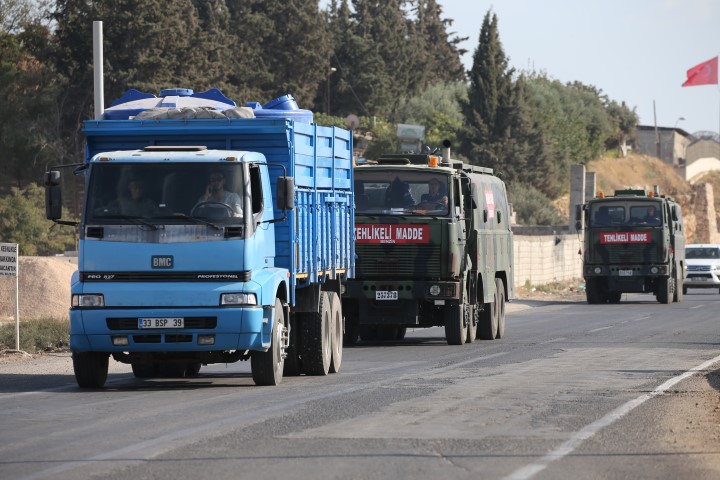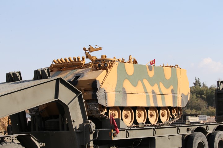 İntikalin yapılacağı İdlib'in sınır komşusu Hatay'ın Reyhanlı ilçesine gelen askeri malzemeler, 4 otobüs asker ve zırhlı personel taşıyıcılar ilgili birliklere sevk edildi.