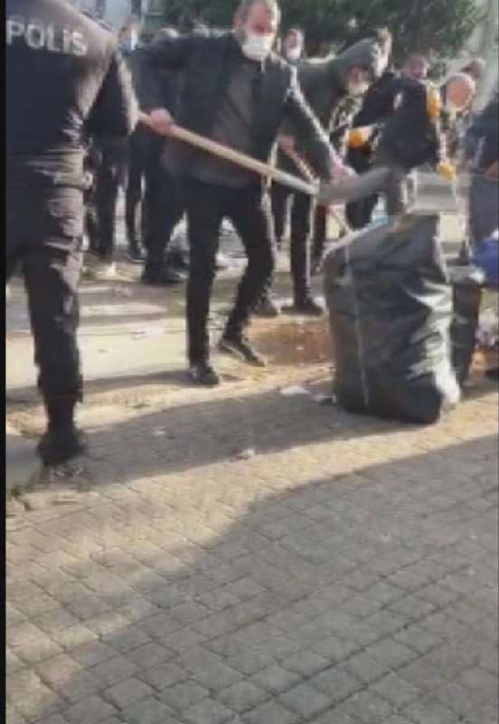 Ekiplerin çalışmasını öğrenen DİSK'e bağlı Genel-İş Sendikası'na bağlı işçiler, çöp arabalarıyla birlikte sokağa geldi. Sendika üyeleri ve çöpleri toplayan ekipler arasında tartışma çıktı. Polis ekipleri iki grup arasındaki tartışmaya müdahale etti. O anlar cep telefonu kamerasına yansıdı.