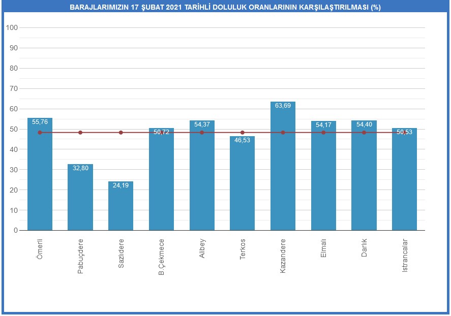 İSKİ'den yapılan açıklamaya göre, baraj doluluk oranı yüzde 48,28'e yükseldi.